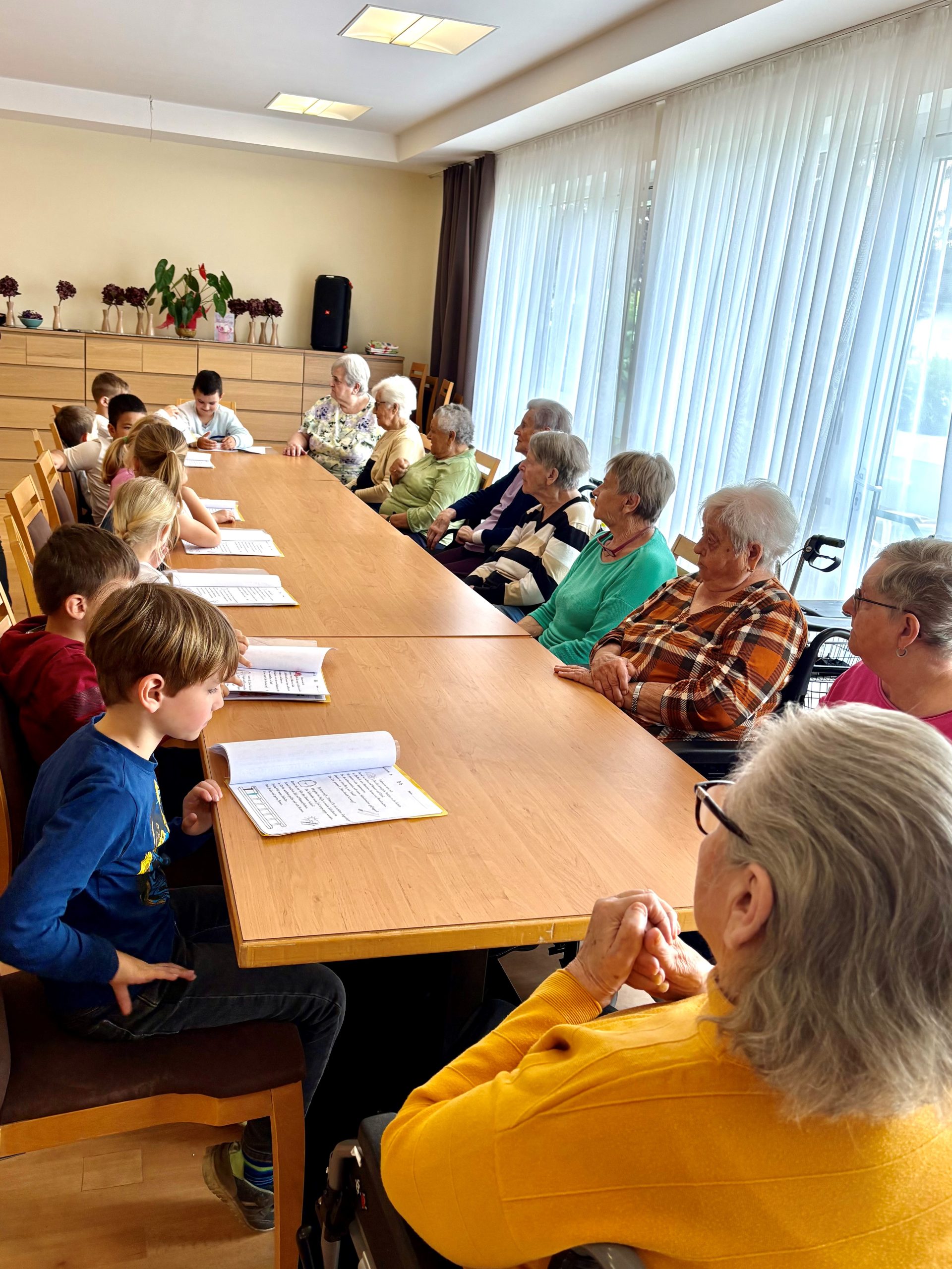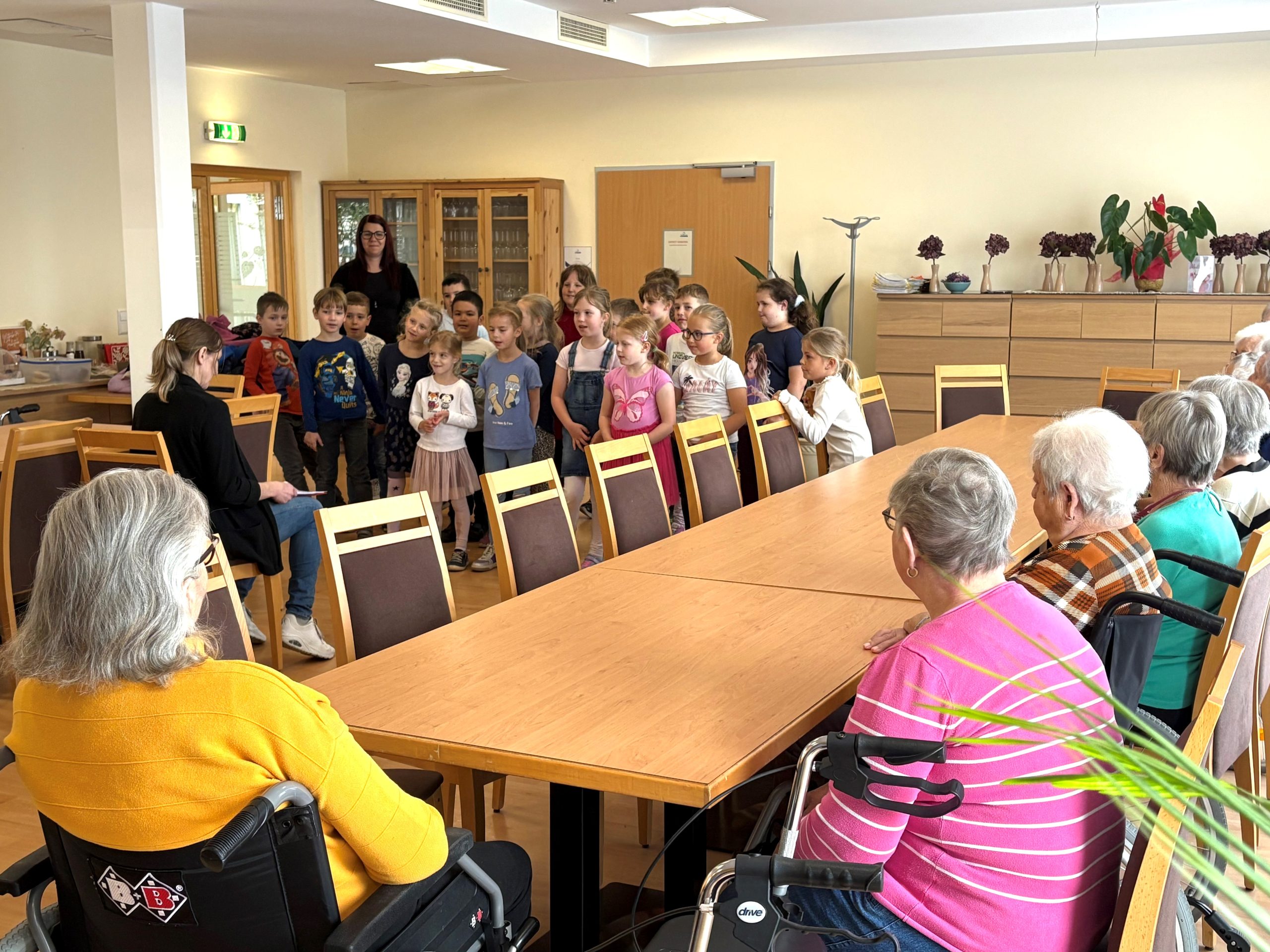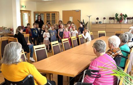 Kürzlich besuchten die Volksschüler:innen der 1. Klasse in Vogau, die Senior:innen des SeneCura Sozialzentrums St. Veit. Das lieb gewonnene Leseprojekt findet einmal pro Monat statt und neue Buchstaben bzw. kurze Textteile können bereits zur großen Freude aller vorgetragen werden. Zudem wird meistens auch ein Lied oder ein kurzes Gedicht zum Besten gegeben. Die Senior:innen und Kinder freuen sich über die gemeinsamen Stunden.
