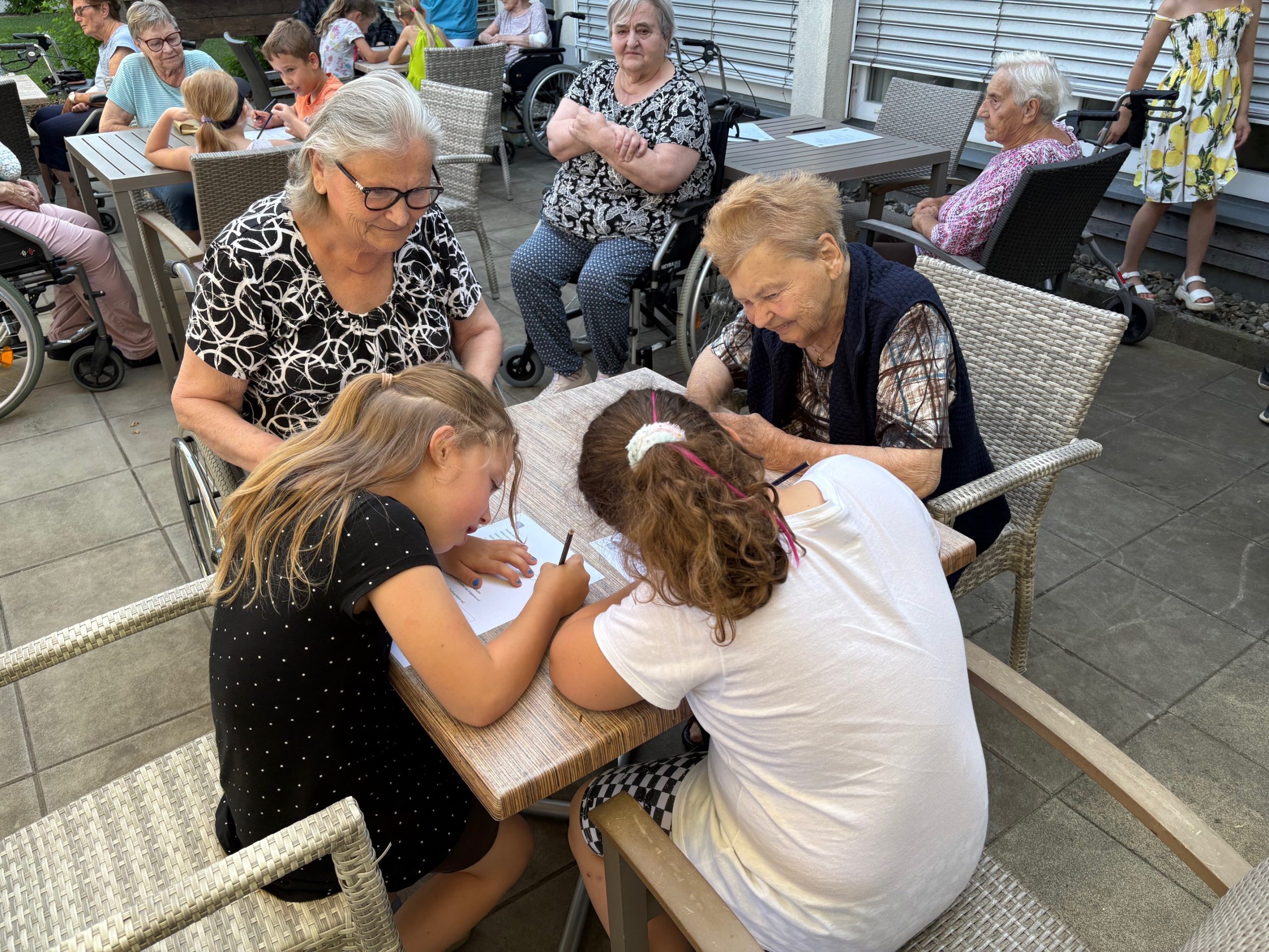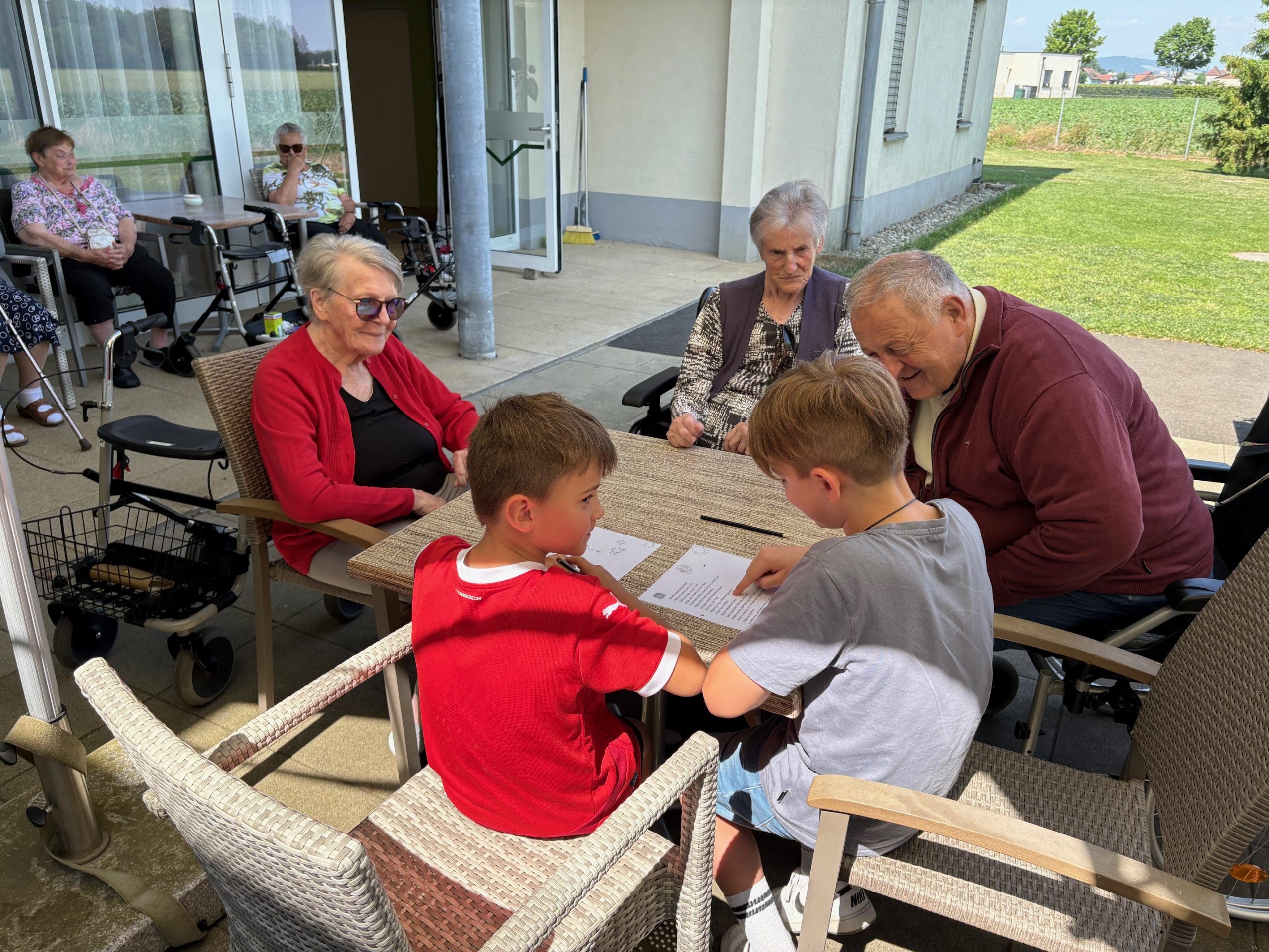 Kürzlich besuchten die Volksschüler:innen der 1. Klasse in Vogau, die Senior:innen des SeneCura Sozialzentrums St. Veit. Das lieb gewonnene Leseprojekt findet einmal pro Monat statt und neue Buchstaben bzw. kurze Textteile können bereits zur großen Freude aller vorgetragen werden. Zudem wird meistens auch ein Lied oder ein kurzes Gedicht zum Besten gegeben. Die Senior:innen und Kinder freuen sich über die gemeinsamen Stunden.