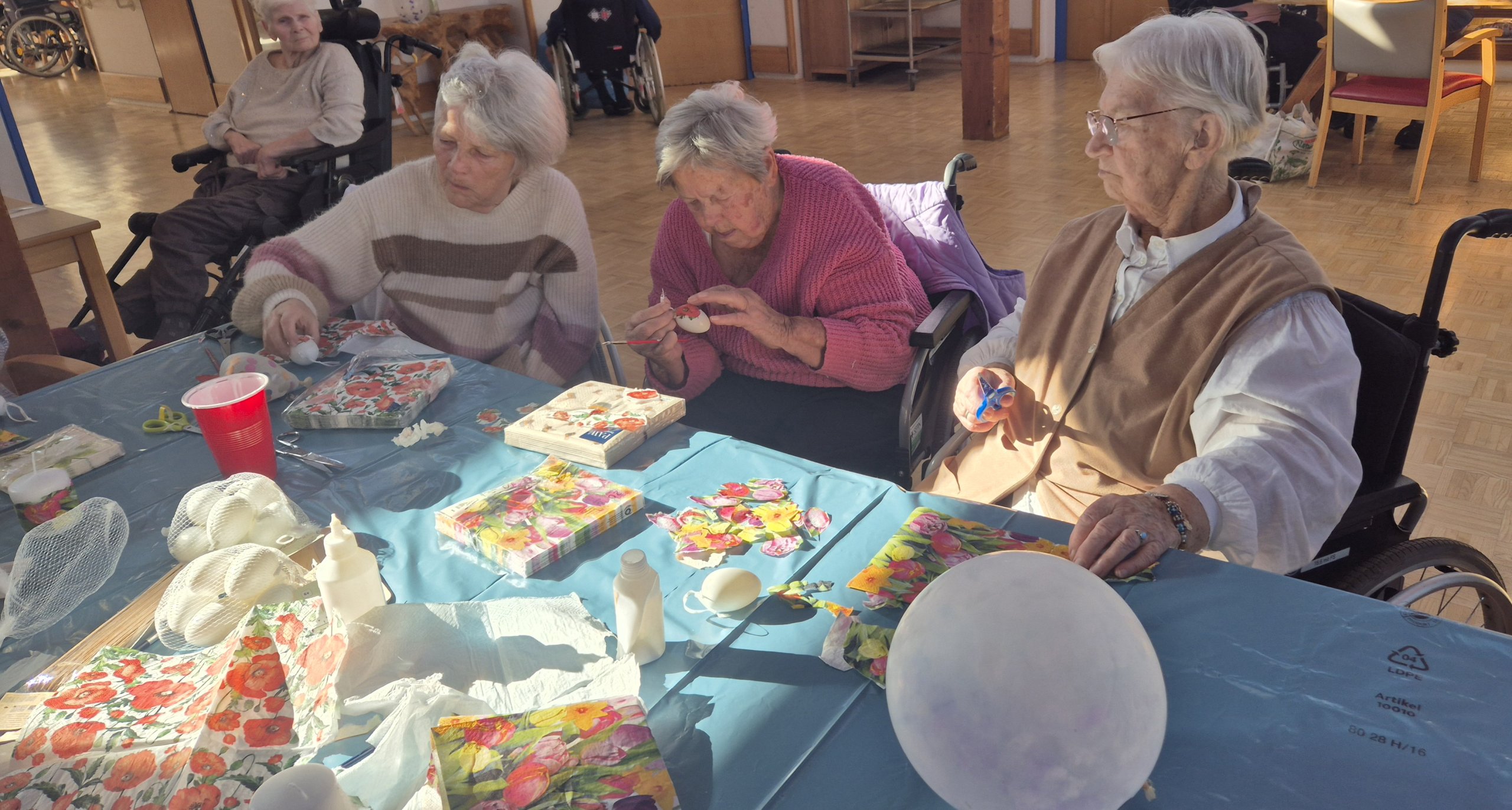 Die Bewohner:innen des SeneCura St. Veit an der Glan waren in den letzten Tagen fleißig am Basteln. Gilt es doch, einige besondere Schmuckstücke für einen kleinen Osterbasar zu gestalten. Für dekorative Basteleien ist das Pflegezentrum bereits bekannt, so wollten wir auch heuer wieder für Angehörige und Interessierte ein paar Dekoartikel vorbereiten, die im Rahmen eines kleinen Basars angeboten werden. Dieser findet übrigens am 19.3.2026 statt und wird in Verbindung mit Buchpräsentation von Bruno Kelz, einem pensionierten St. Veiter Polizisten kombiniert, der mit seinem Werk „Berger XY (un)gelöst“ einen kleinen Kriminalroman rund um Polizei-Geschichten aus der Gegend rund um St. Veit/Glan geschaffen hat.