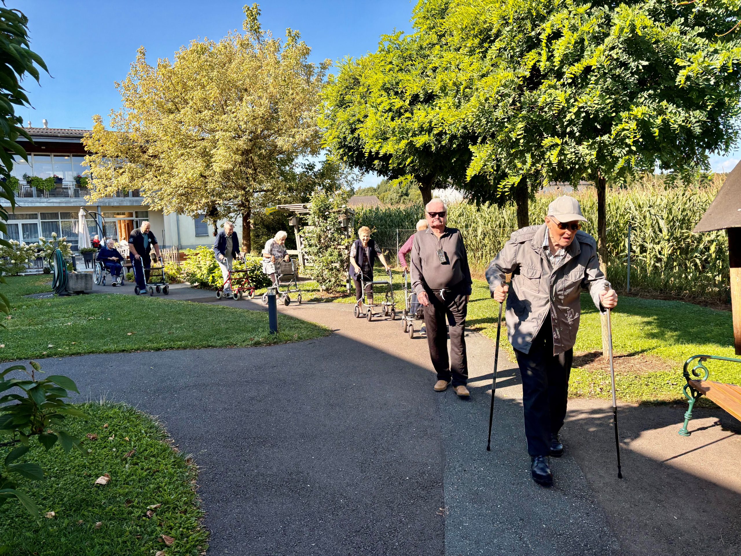 Kürzlich nahmen zahlreiche Bewohnerinnen und Bewohner des SeneCura St. Veit in der Südsteiermark an der Veranstaltung „Fit mit jedem Schritt“ teil. Das Ziel des Projektes war es, regelmäßige Bewegung in den Alltag zu integrieren und die Gemeinschaft zu fördern. Dabei wurden kleine Spaziergänge mit Walking-Stöcken bzw. mit dem Rollator durch den Garten des Hauses durchgeführt.