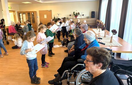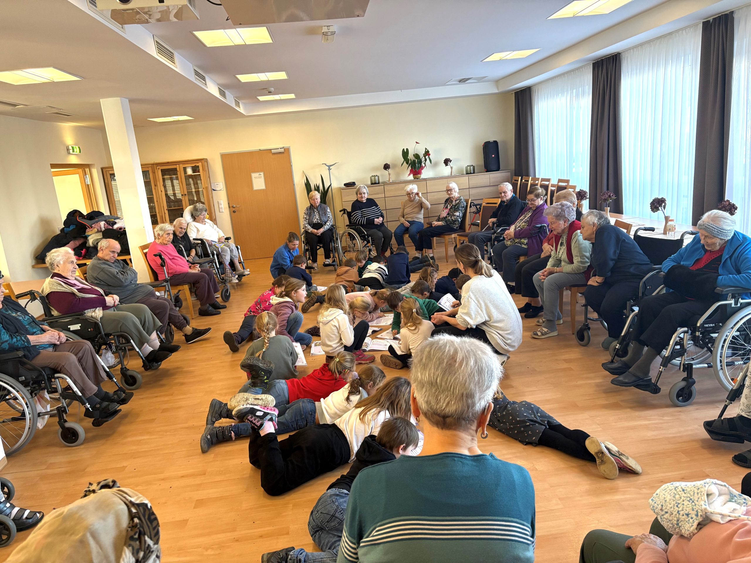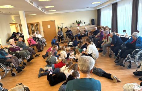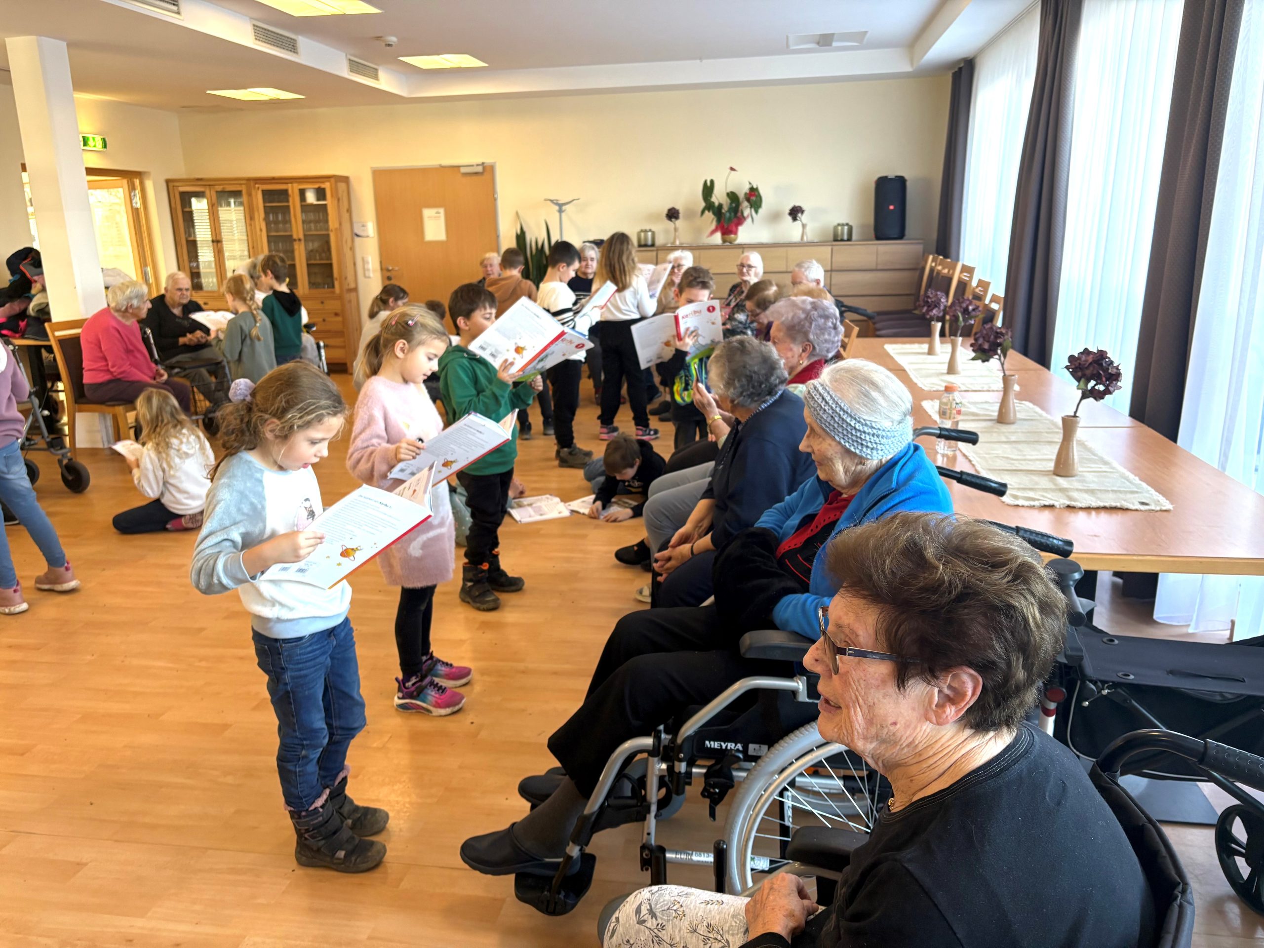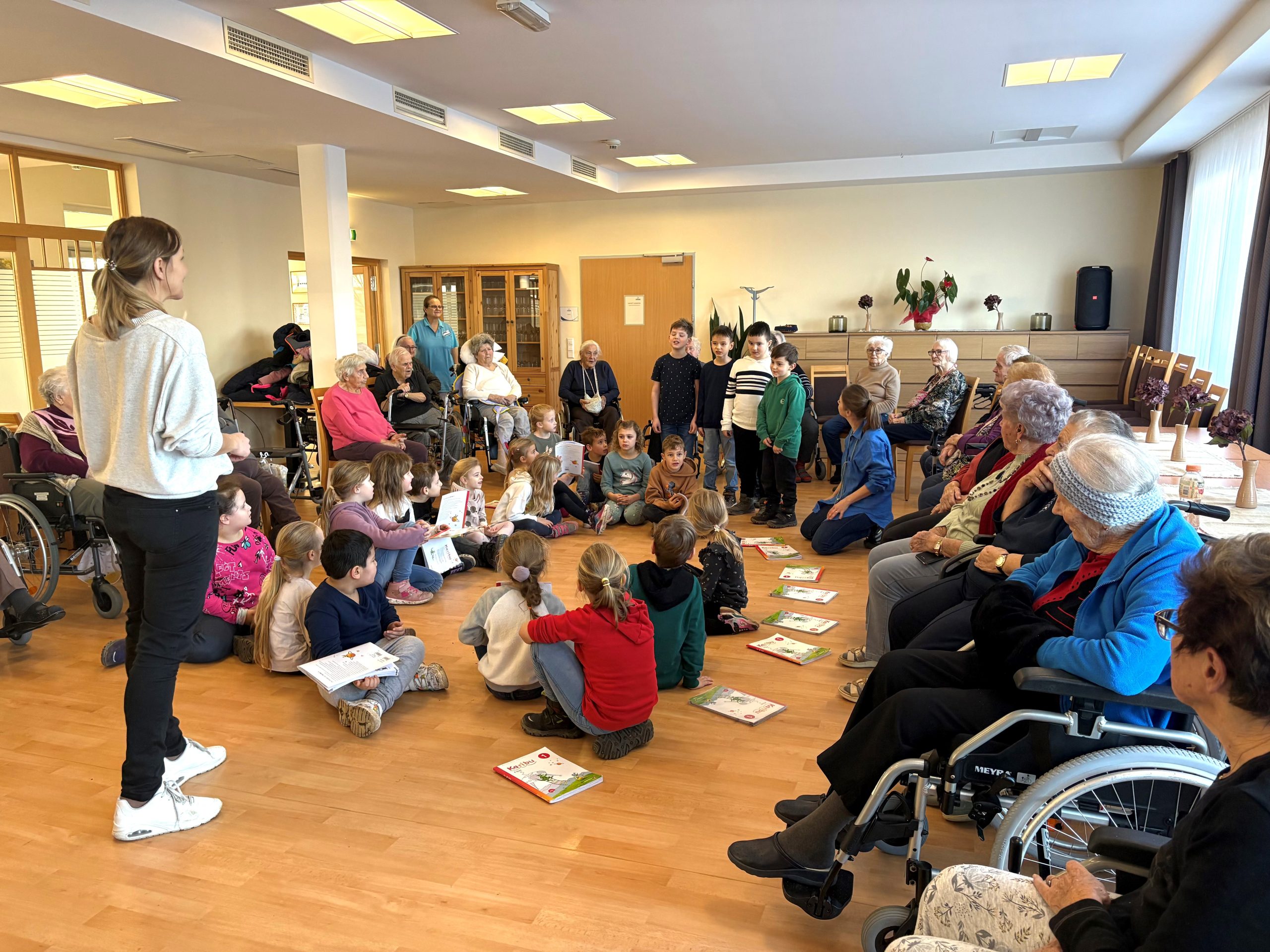 Kürzlich war es wieder soweit – die Schüler:innen der 1. Klasse Volksschule St. Veit am Vogau besuchten die Bewohner:innen des SeneCura Sozialzentrums St. Veit in der Südsteiermark. Im Zuge des gemeinsamen Leseprojekts besuchen die Kinder einmal im Monat das Haus und gemeinsam werden die neuen Buchstaben geübt bzw. kurze Teile, die sie schon lesen können, den Senior:innen vorgelesen. Auch ein Lied oder kurzes Gedicht wird vorher immer einstudiert und den Bewohner:innen vorgetragen. Die Freude über die Besuche der Kinder ist immer riesig! Bis zum nächsten Besuch!