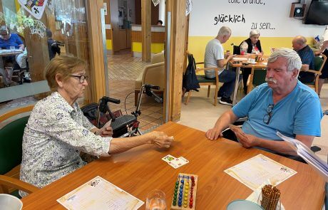 Frau Cigler schaffte es mit allen Teilnehmer:innen zu spielen und konnte sogar um den dritten Platz mitspielen. Sehr spannend gestaltete sich das letzte Spiel für sie: das Glück war ihr hold und sie erreichte den dritten Platz. Nach der Preisverleihung ging es wieder nach Hause. Für Fr. Cigler war es einfach toll. Die wunderbaren Begegnungen, diese besondere Erfahrung einen ganzen Tag dem Alltag zu entfliehen, hat beiden Damen sehr gut getan, freute sich Hausleitung Kathrin Hopfer Kathrin und meinte: „Noch ein bisschen üben und im nächsten Jahr bringen sie vielleicht dem Wanderpokal nach Stainz.“