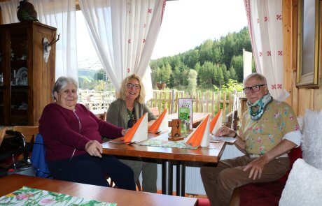 Ein ganz besonderer Herzenswunsch ging kürzlich für zwei Bewohner:innen des SeneCura Sozialzentrums Trofaiach in Erfüllung. Da es für Frau Sachornik und Herrn Thaler nicht mehr möglich ist, an einem großen Ausflug teilzunehmen, erfüllte die Seniorenanimation den Herzenswunsch der beiden Bewohner:innen und so ging es für sie an einem herrlichen Nachmittag an den Trabochersee. Zuerst gab es zur Stärkung ein Naturschnitzel mit Reis und gemischten Salat bei „Michis Seeschenke“ sowie ein gutes Bier. Danach wurde ein Spaziergang um den Trabochersee unternommen, die Enten beobachtet und sich an der herrlichen Natur erfreut. Die anschließend organisierte Tretbootfahrt wurde durch einen kurzen Regenschauer verhindert, stattdessen ging es zum Aufwärmen in die Hütte, wo ein köstlicher Kaffee getrunken und ausgezeichnete, gebackene Apfelkrapferln genossen wurden. Die beiden Bewohner schwärmten von einem ganz besonderen Nachmittag nur für sie.