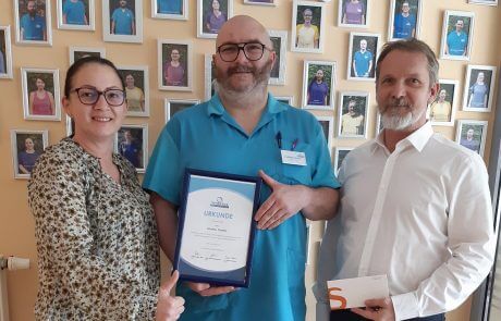 Mitarbeiter Günther Theißel hat die Ausbildung zum basalen und mittleren Pflegemanagement mit März 2025 erfolgreich abgeschlossen. Herr Theißl hat 2014 als Pflegehelfer begonnen und ist derzeit als Wohnbereichsleiter im Hause tätig. „Wir gratulieren herzlich zum erfolgreichen Abschluss der Ausbildung.“, so Harald Steiner samt Team erfreut.