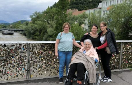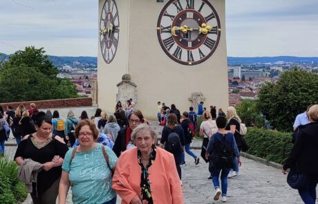 Im Zuge des SeneCura Urlaubsaustausches besuchte heuer das SeneCura Pflegezentrum Arnoldstein das SeneCura Pflegezentrum Schwarzau. Von 10. bis 14. Juni verbrachten vier Kärtnerinnen schöne Urlaubstage in der Steiermark. Nach der Anreise wurden die Urlauberinnen bei einem Sektempfang von der Hausleitung und der Pflegedienstleitung begrüßt und danach gab es ein gemeinsames Mittagessen. Später ging es zur Kapelle Glojach und auf einen Eiskaffeee ins Café Stöhr. Am zweiten Tag wurde der Tierpark Herberstein sowie das Schloss besucht. Mittwochs ging es dann nach Graz, wo das Waldfest am Grazer Hauptplatz besucht wurde und später der Uhrturm besucht wurde. Hier genoss die Gruppe den tollen Ausblick über die Stadt. Am Donnerstag stand ein buntes Animationsprogramm im Haus am Plan und Mittags ging es zum Backhendlessen ins Gasthaus Leber. Am Nachmittag wurde dann gemeinsam das Sommerfest des Pflegezentrums Schwarzau mit den Angehörigen des Hauses gefeiert. Am Freitag gab es noch ein gemütliches Frühstück gemeinsam mit der Hausleitung, bevor es wieder nach Arnoldstein ging. Alle genossen die Tage in Schwarzau sehr und fuhren voller neuer, schöner Erinnerungen nach Hause.