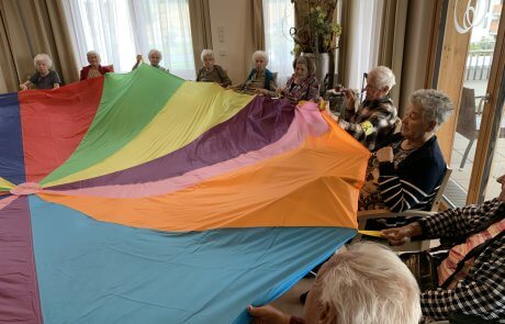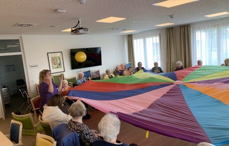 Spaß und Freude hatten die Bewohner:innen mit dem Schwungtuch