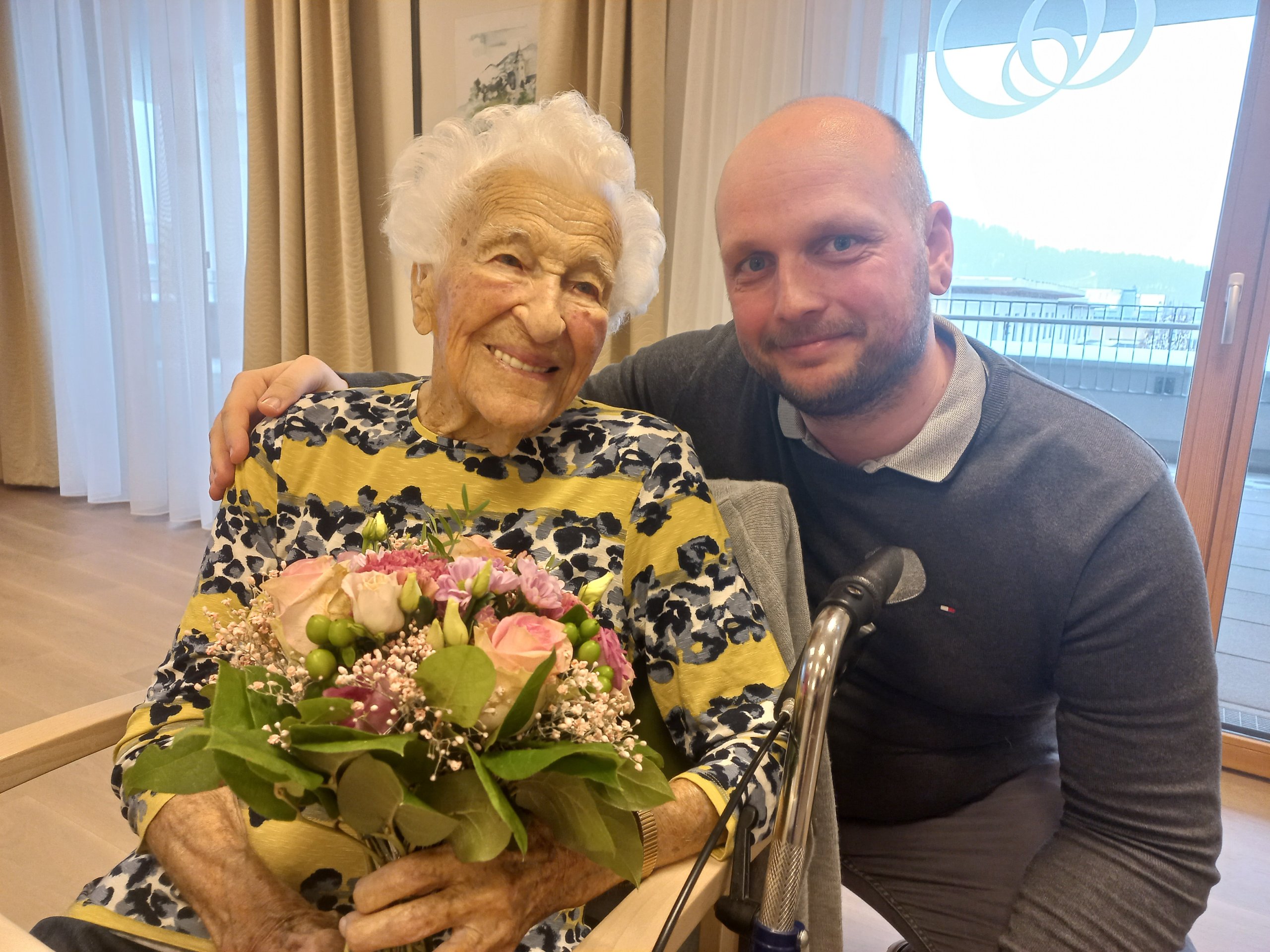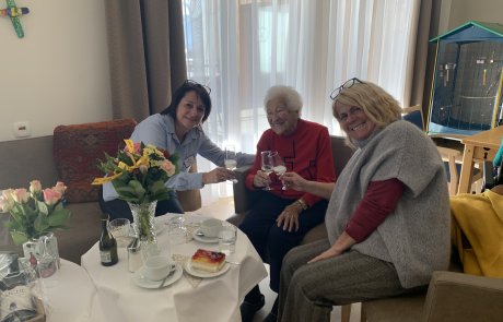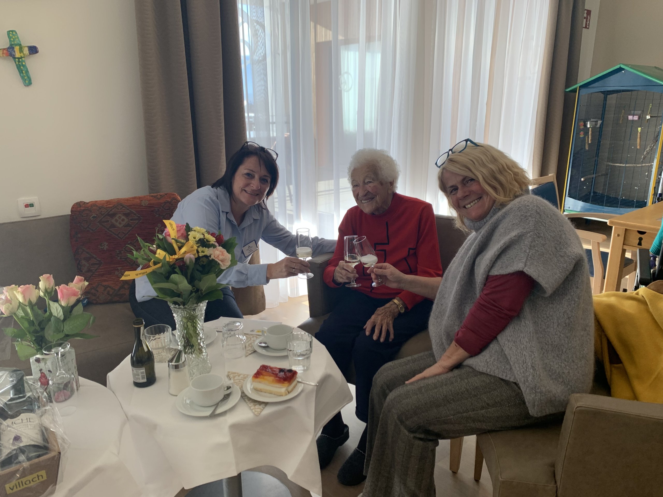 Mag.a Gerda Sandriesser, Vizebürgermeisterin Villach überbrachte am 14.01.2026 persönliche Glückwünsche des Bürgermeisters, sowie einen Blumenstrauß und einen Präsentkorb und stieß gemeinsam mit Frau Pikalo und Hausleitung Bettina Kreuzer auf das Wohl der Jubilarin an.