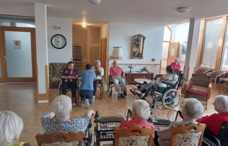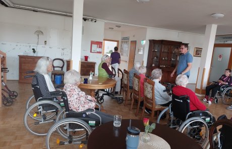 Kürzlich ging es im SeneCura Villach musikalisch her: Wolfgang Felsberger kam vorbei, um mit den Bewohner:innen zu singen. Bei altbekannten Liedern wurde fleißig mitgesungen und geschunkelt. Ein flaumiger Kuchen und frischer Kaffee machten den Nachmittag perfekt. Alle genossen die gemeinsame Zeit sehr und freuen sich auf den nächsten Besuch.