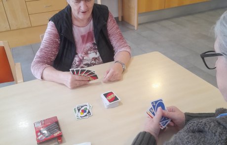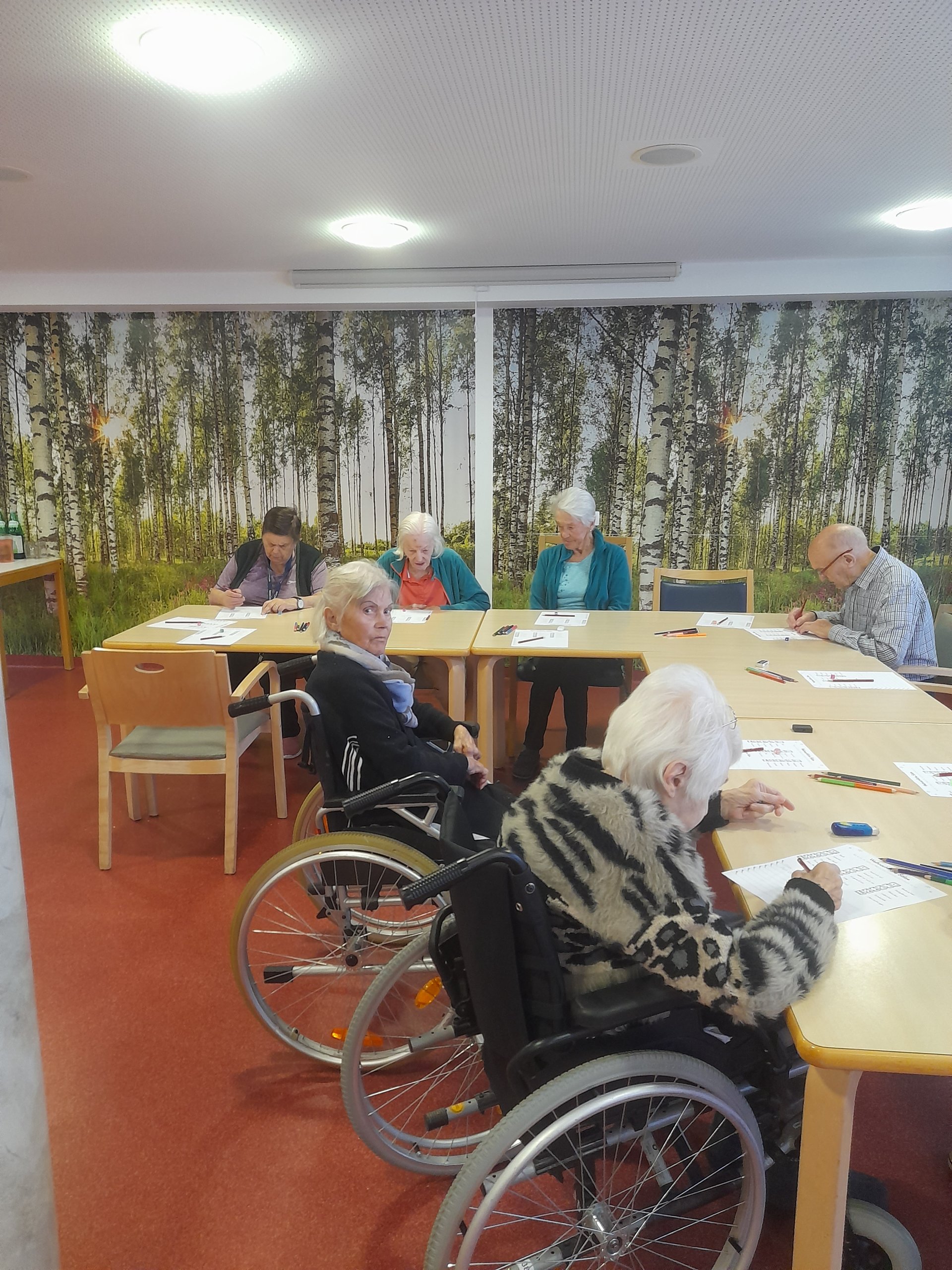 Am darauffolgenden Tag trainierten unsere Bewohner:innen beim Gedächtnistraining Konzentration und Kreativität. Wörter im Wörtersalat, Rechnen mit Uhrzeiten sowie ein Würfelspiel, bei dem lustige Sätze entstanden, sorgten für viele heitere Momente und herzhaftes Lachen.