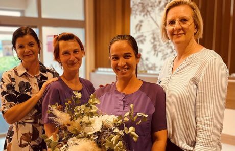 DGKP Kerstin Müller ist seit 5 Jahren Teil des SeneCura Pflegeheims Wolfsberg. Mit ihrer herzlichen Art, ihrem Humor und ihrer Hilfsbereitschaft ist sie nicht nur ein echter Teamplayer, sondern auch für niemanden aus dem Alltag wegzudenken. Das gesamte Team – besonders Pflegedienstleitung Monika Kainz und Hausleitung Cornelia Ozwirk gratulieren ihr herzlich zum 5-jährigen Jubiläum!