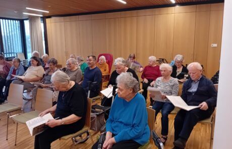 Kürzlich besuchten die Harder Sternensänger das SeneCura Sozialzentrum Hard. Insgesamt 26 Bewohner:innen freuten sich sehr über den Besuch und nahmen gerne an einem gemeinsamen Singnachmittag teil. Die Sänger hatten Liedtexte dabei, die unter den Senior:innen ausgeteilt wurden und die schwungvollen Lieder animierten sofort zum Mitsingen. Die Bewohner:innen haben sich sehr über den Singnachmittag gefreut und haben fleißig mitgesungen.