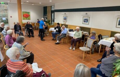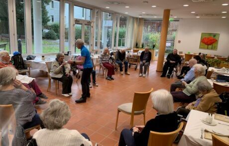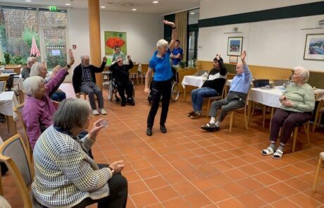 Jeden Donnerstag bietet das SeneCura Sozialzentrum Dornbirn eine unterhaltsame Sitzgymnastik an. Mit großer Freude nehmen die Bewohner:innen des Hauses daran teil und bringen ihren Kreislauf in Schwung. Die Turnstunde bietet die perfekte Möglichkeit, sich zu bewegen, fit zu bleiben und gleichzeitig Spaß zu haben.