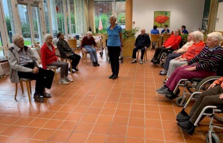Jede Woche erleben die Bewohner:innen des SeneCura Sozialzentrums Dornbirn eine unterhaltsame Sitzgymnastik mit Gerda. Immer wieder gerne nehmen die Seniorinnen und Senioren daran teil, um fit und gestärkt zu bleiben. Die Turnstunde bietet die tolle Möglichkeit, sich regelmäßig zu bewegen und gleichzeitig Spaß zu haben.