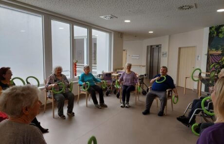 Im SeneCura Sozialzentrum St. Margarethen an der Raab geht es sportlich umher. Seit Anfang des Jahres bietet die Animation mit Hilfe der ehrenamtlichen Mitarbeiterinnen Smovey-Einheiten an. Smoveys sind grüne Ringe, die durch vier Stahlkugeln im Inneren eine Vibration entstehen lassen. Die dadurch ausgelösten Reize wirken sich auf die Muskeln, das Gewebe, die Organe und das Nervensystem aus. Die Smovey-Einheiten kommen bei den Bewohner:innen sehr gut an und sind gleichzeitig gut für die Gesundheit. Der Spaß kommt bei der Smovey-Aktivität natürlich auch nicht zu kurz – und das ist selbstverständlich das Wichtigste.