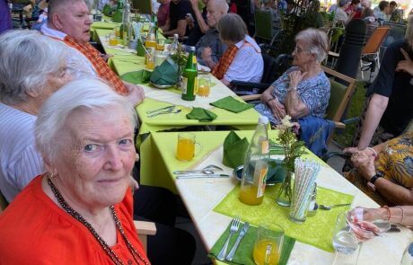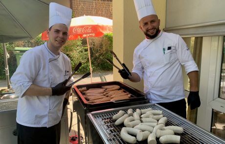 Für die musikalische Unterhaltung sorgte die beliebte Band SILBERSPÄNE, die mit schwungvollen Melodien und bekannten Klassikern für beste Stimmung bei Bewohner:innen, Angehörigen und Mitarbeitenden sorgte. Auch kulinarisch war einiges geboten: Beim gemeinsamen Grillen durften sich alle über frisch zubereitete Würstel, Koteletts und Gemüsevariationen freuen – ein echter Genuss an einem Sommertag. Es wurde gelacht, getanzt, gesungen und das Miteinander genossen. Solche Momente zeigen, wie wertvoll gemeinsame Zeit und Lebensfreude im Alltag sind.