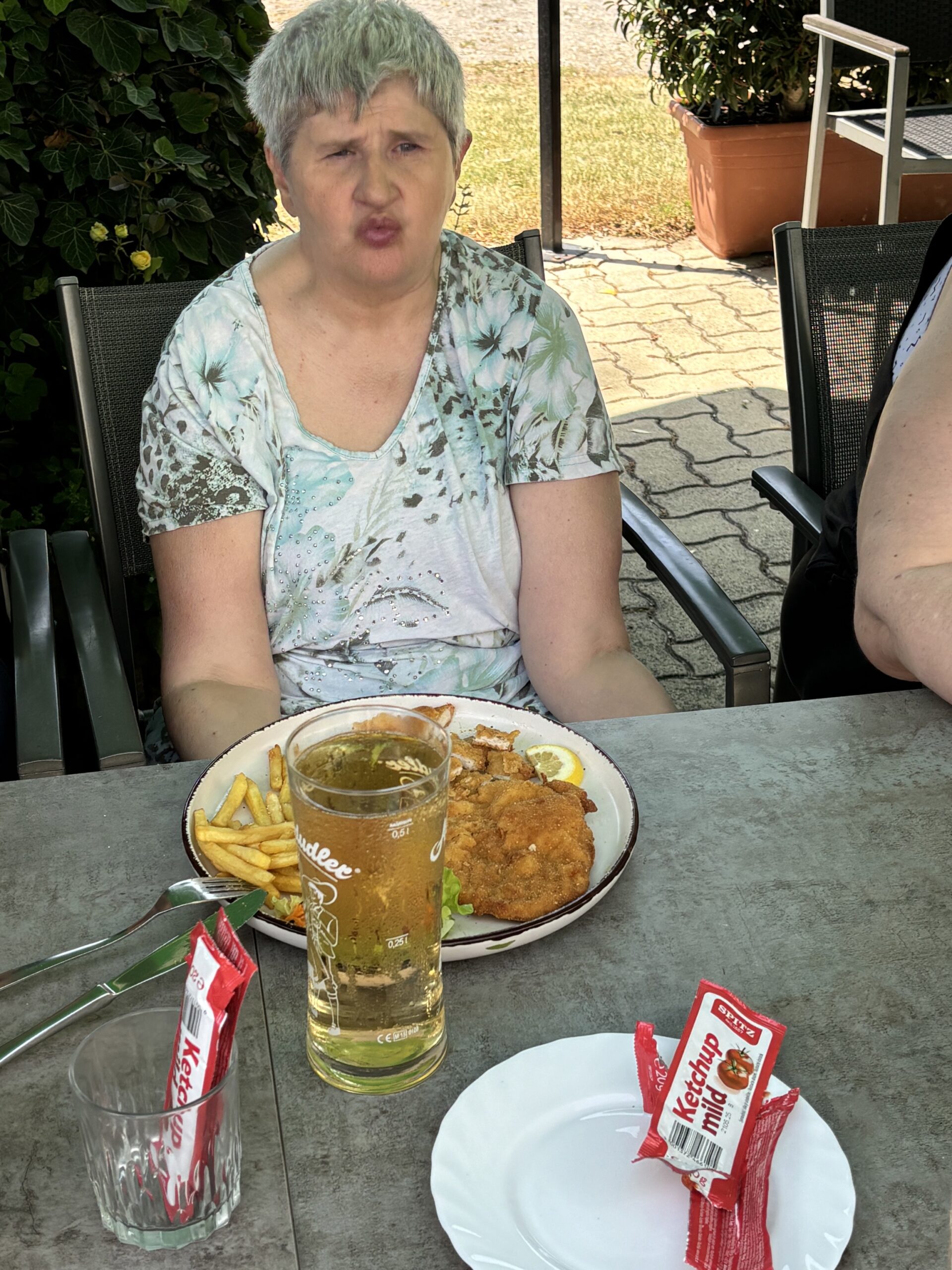 Frau Csmarich genießt ihr Schnitzel