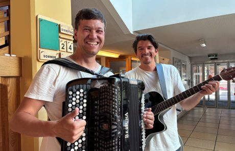 Gemeinsam mit ihren Angehörigen und Freunden genossen die Bewohnerinnen und Bewohner einen unvergesslichen Nachmittag. Für die musikalische Unterhaltung sorgten Adrian & Anton – ihre schwungvolle Musik lud zum Tanzen, Mitsingen und fröhlichen Beisammensein ein.