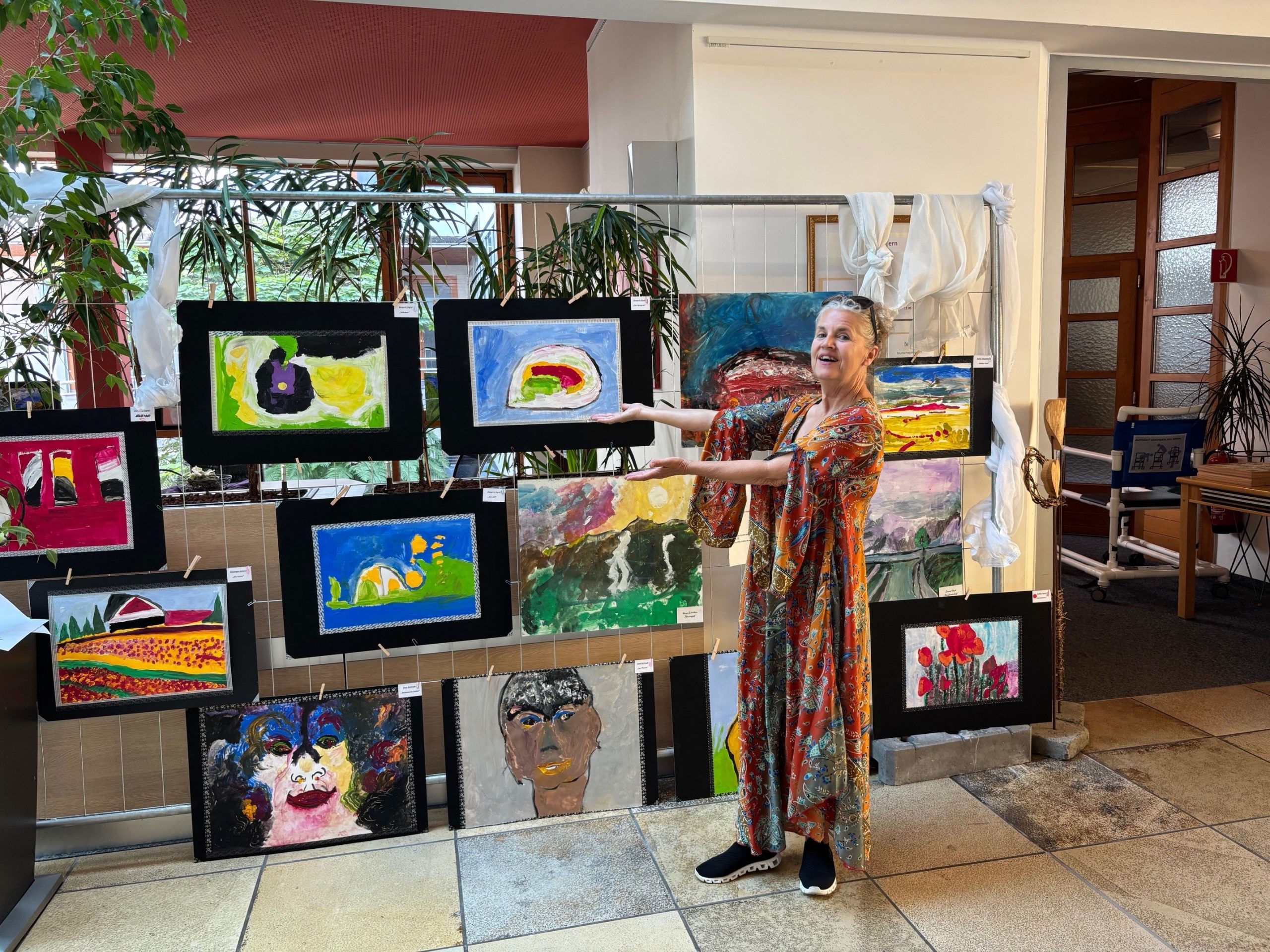 Ein weiteres Highlight war die Bilderausstellung, bei der die Werke unserer talentierten Bewohnerinnen und Bewohner präsentiert wurden. Die langjährige, engagierte Maltherapeutin Andrea Gander-Malin stellte die liebevoll gemalten Bilder vor, die auch käuflich erworben werden konnten – eine wunderbare Gelegenheit, Kreativität zu würdigen und zu unterstützen.