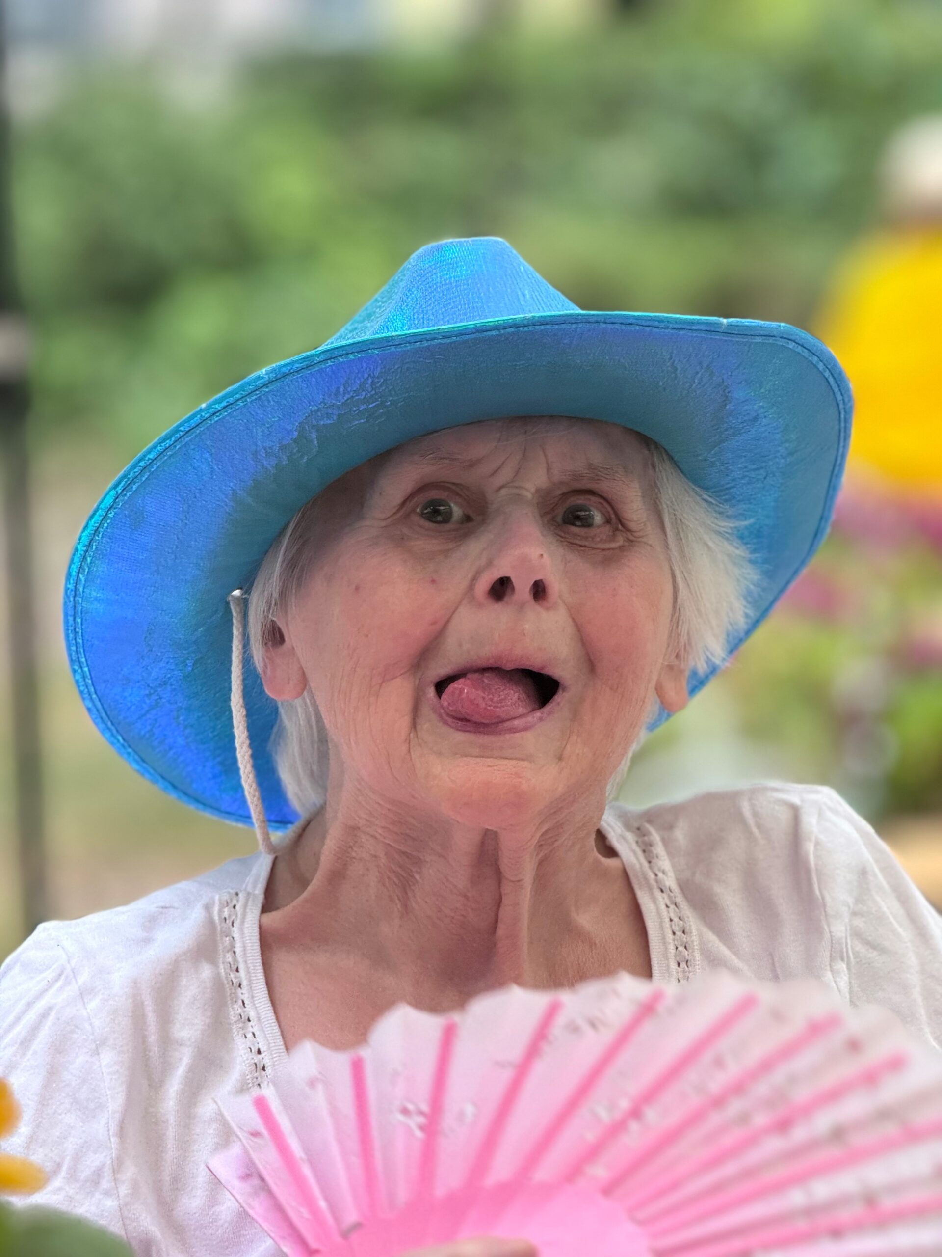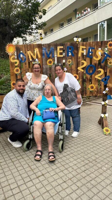 Die Bewohnerin freut sich auf das Sommerfest mit ihren Liebsten.