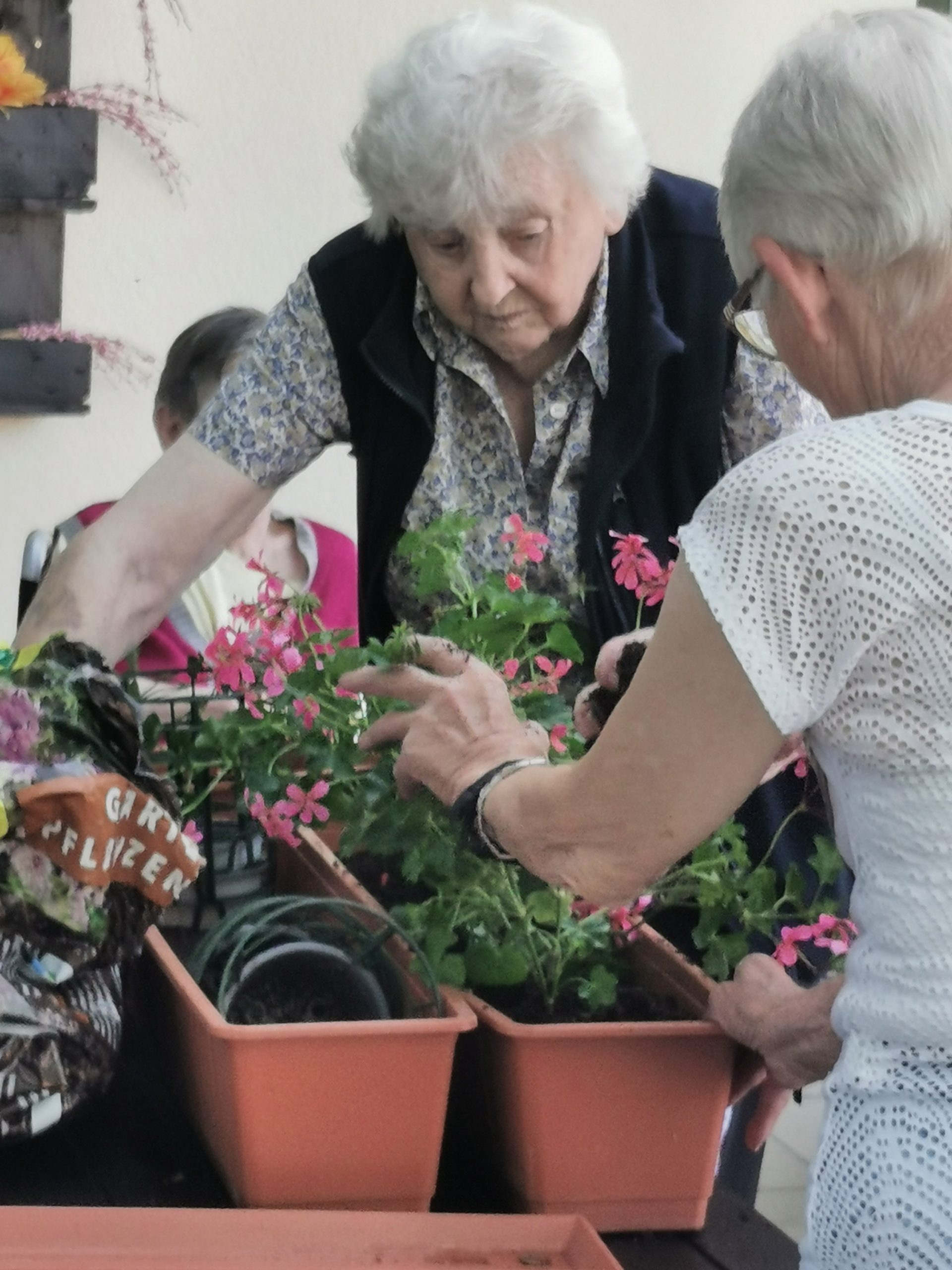 Auch beim Bepflanzen der Blumenkistchen wurde fleißig geholfen