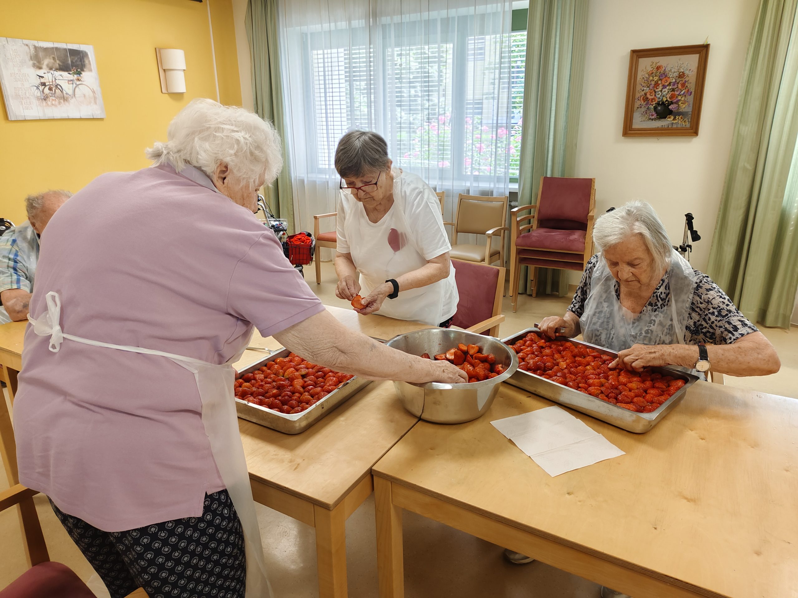 Auch im Juni ging es im SeneCura Sozialzentrum Gratkorn wieder lustig zu. Zum einen fand die traditionelle Vatertagsfeier mit dem Trompetenexpress statt. Musikalische Glanzstücke ließ die tanzerprobten Väter sicherlich nicht kalt. Aber auch die kulinarischen Genüsse kamen nicht zu kurz. Die Senior:innen backten fleißig Erdbeerkuchen. Dabei tauschte man das ein oder andere Rezept mit Gelinggarantie aus. Zu guter Letzt wurde auch wieder fleißig gegartelt. Schöne Sommerblumen zierten seither den Außenbereich des SeneCura Gratkorn – ganz zur Freude der Bewohner:innen.