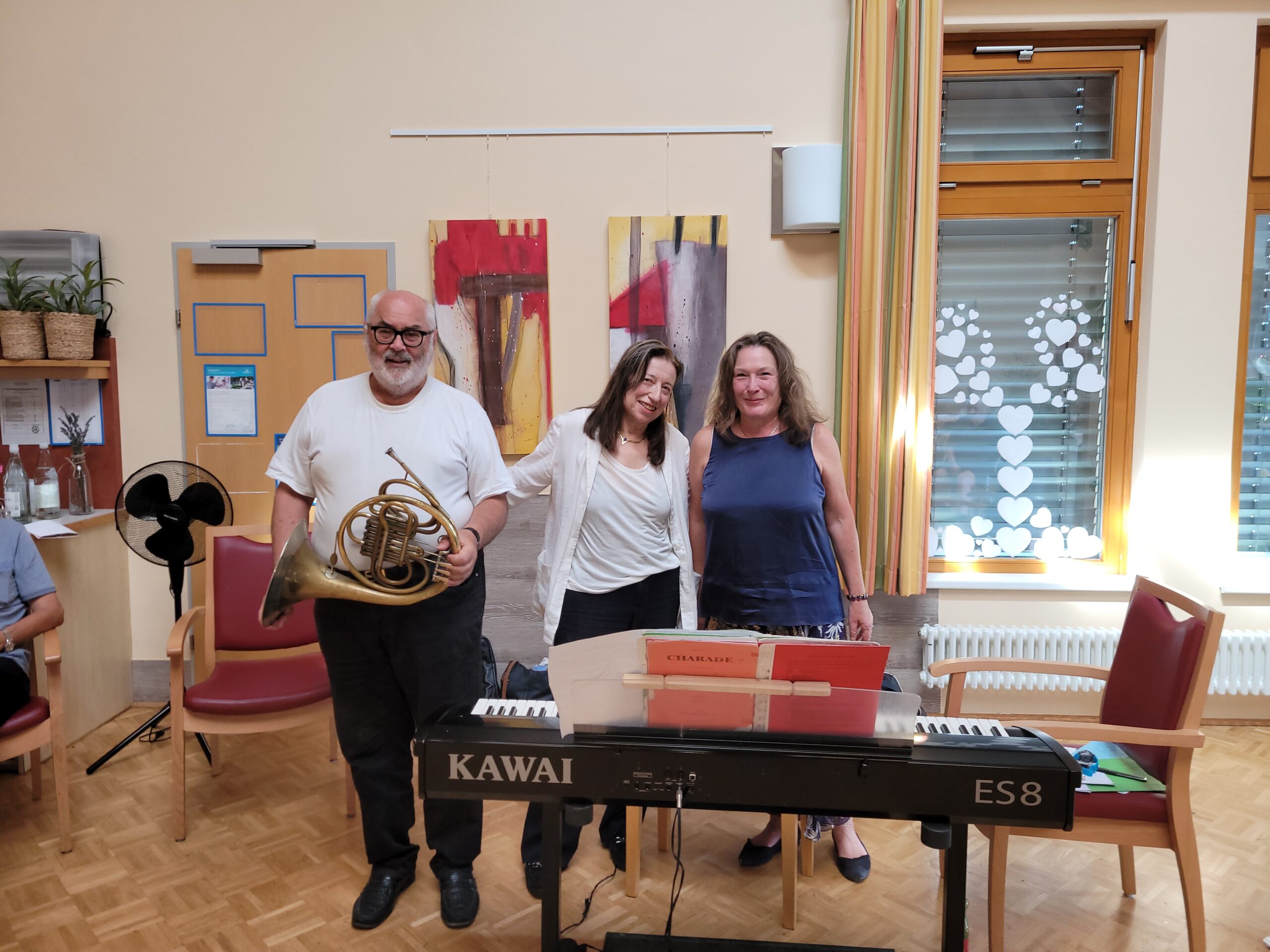 Schwungvolle Melodien klangen vor einigen Tagen durch das Haus, als das „lisztige“ Trio die Bewohner:innen besuchte und alle mit einem kostenlosen Konzert begeisterte, bevor ihre Tournee durch Österreich, Deutschland und Frankreich losgeht. Eine Stunde lang wurde das Publikum vom Gesang durch Renate Jenni, Roland Horvath mit dem Horn und den Klängen von Pianist Johanna Horny-Neumann verzaubert.