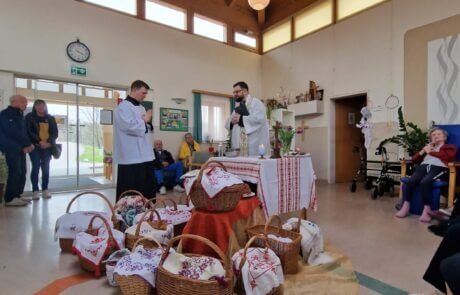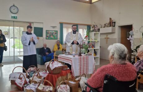 Am Karsamstag fanden sich die Bewohner:innen des SeneCura Pflegezentrums Arnoldstein im Speisesaal zusammen, um dem Brauch in Kärnten nachzugehen. Im Haus wurden die Osterspeisen gesegnet und die Nachbarn kamen auch ins Pflegezentrum und brachten ihre Körbe mit – gemeinsam feierten die Bewohner:innen bei einer schönen Andacht und konnten sich von ganzem Herzen schöne Ostern wünschen. „Da sieht und spürt man, dass wir ein Teil der Gemeinde sind – das macht Freude!“, so die Bewohner:innen.