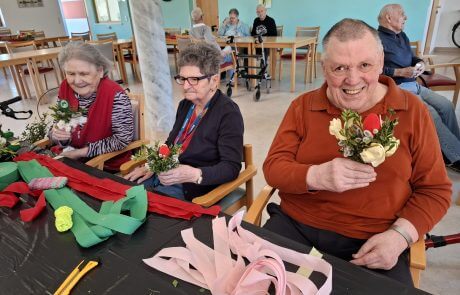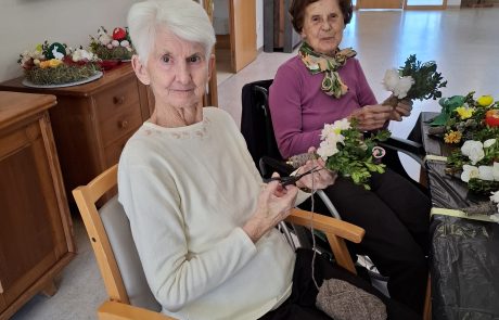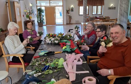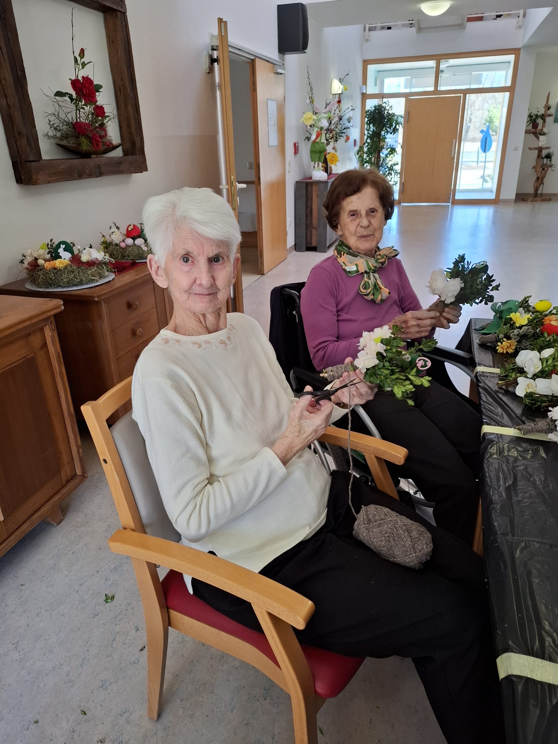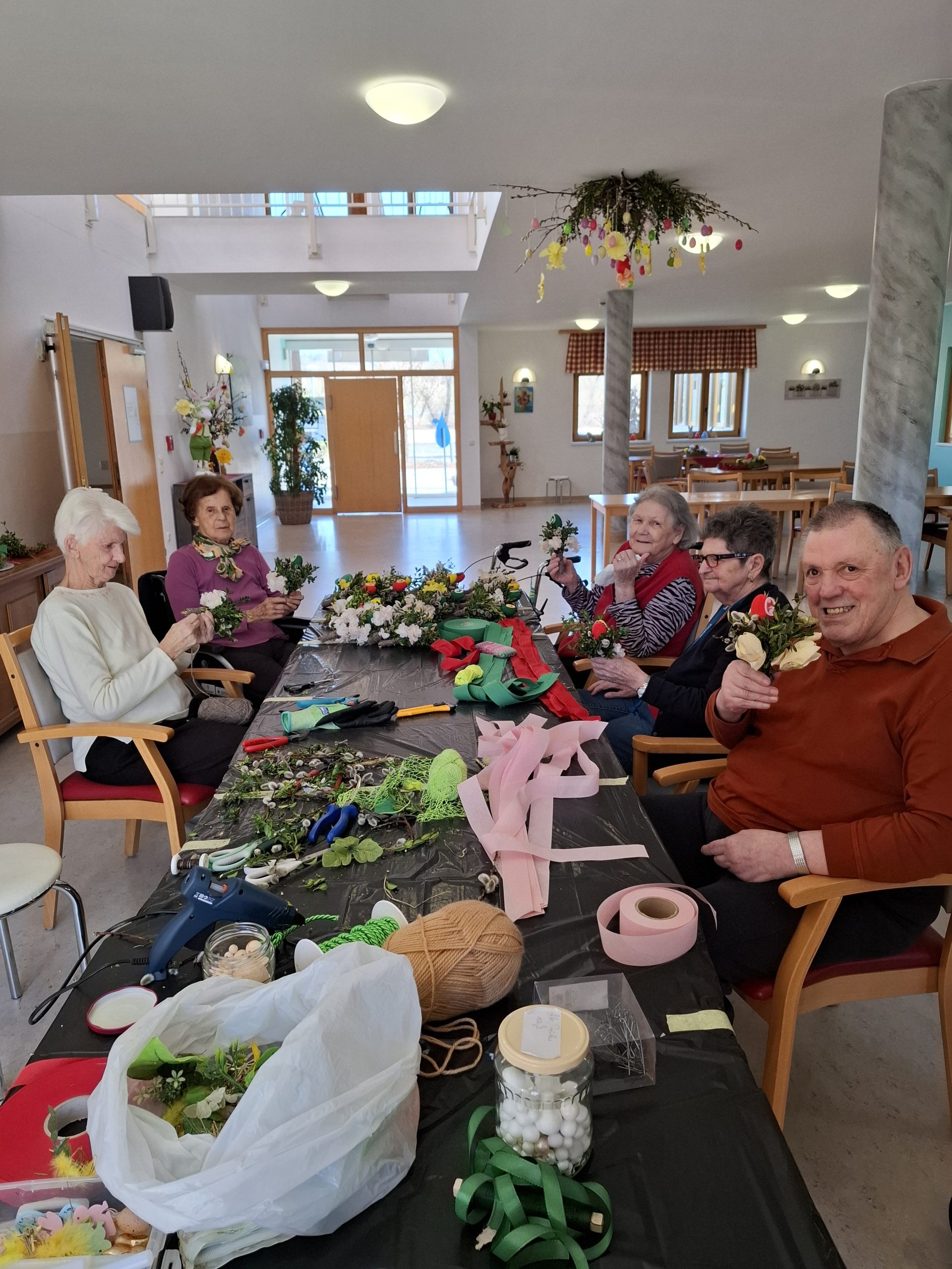 Die Senior:innen des SeneCura St. Veit binden eifrig Palmbuschen