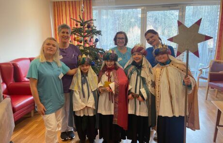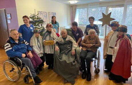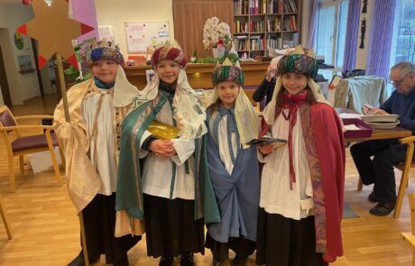 Anfang Jänner war es soweit: Caspar, Melchior und Balthasar – die „Heiligen Drei Könige“ – besuchten mit ihrem Sternträger das SeneCura Sozialzentrum Frantschach-St. Gertraud und überbrachten den traditionellen Segen C+M+B. Mit klassischen Liedern, stimmungsvollen Gebeten und farbenfrohen Kostümen brachte sie gute Laune unter die anwesenden Bewohner:innen. Unsere Senior:innen freuten sich über die Darbietung und über den mitgebrachten Weihrauch. „Es ist so schön die Sternsinger wieder zu sehen, die Gebete und Lieder waren perfekt einstudiert.“ freute sich eine Bewohnerin des Hauses.