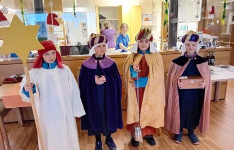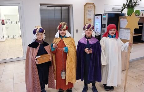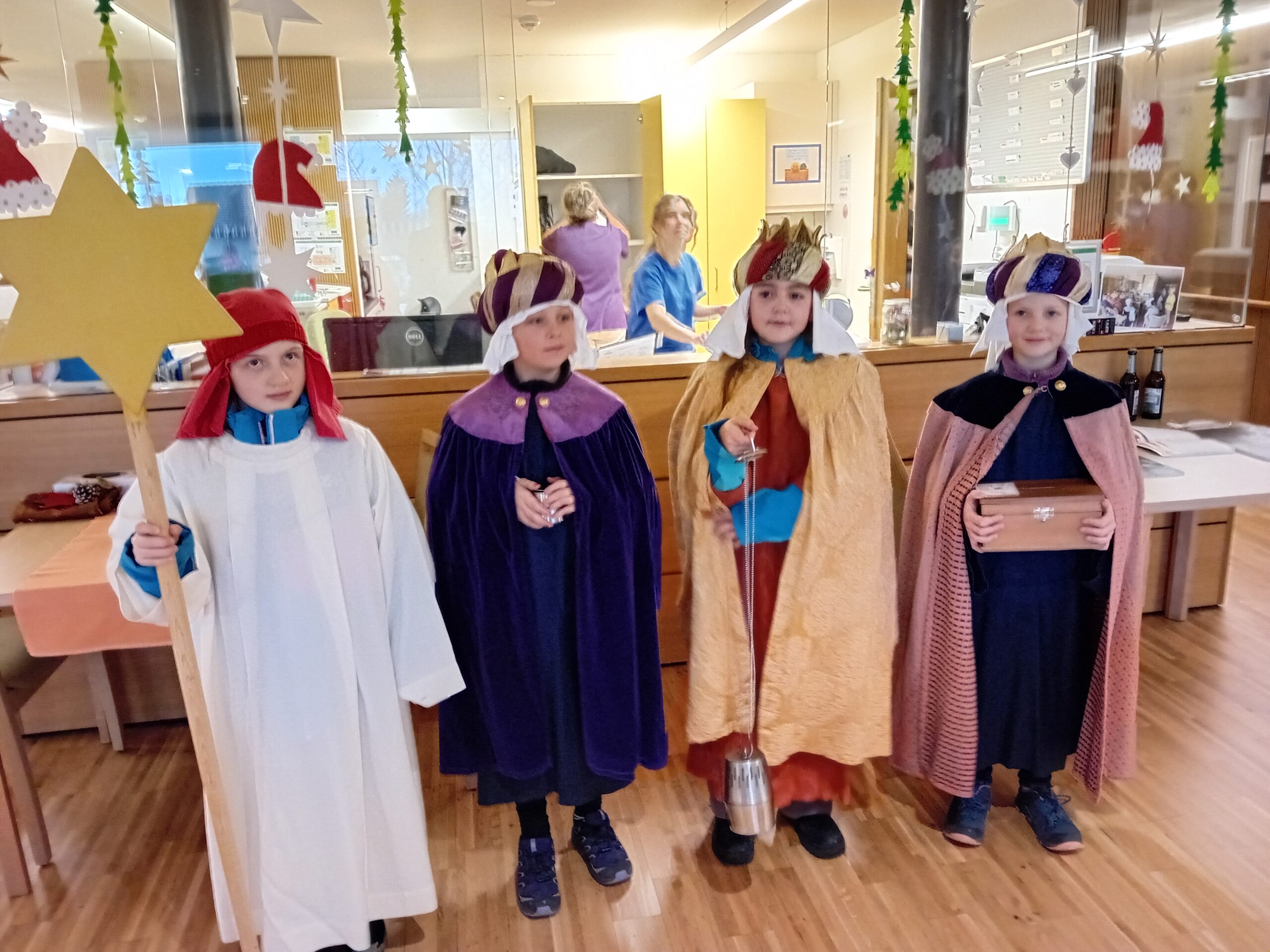 Anfang Jänner war es soweit: Caspar, Melchior und Balthasar – die „Heiligen Drei Könige“ – besuchten mit ihrem Sternträger das SeneCura Sozialzentrum Hard – Haus in der Wirke und überbrachten den traditionellen Segen C+M+B. Mit klassischen Liedern, stimmungsvollen Gebeten und farbenfrohen Kostümen brachte sie gute Laune unter die anwesenden Bewohner:innen. Unsere Senior:innen freuten sich über die Darbietung und über den mitgebrachten Weihrauch. „Es ist so schön die Sternsinger wieder zu sehen, die Gebete und Lieder waren perfekt einstudiert.“ freute sich eine Bewohnerin des Hauses.