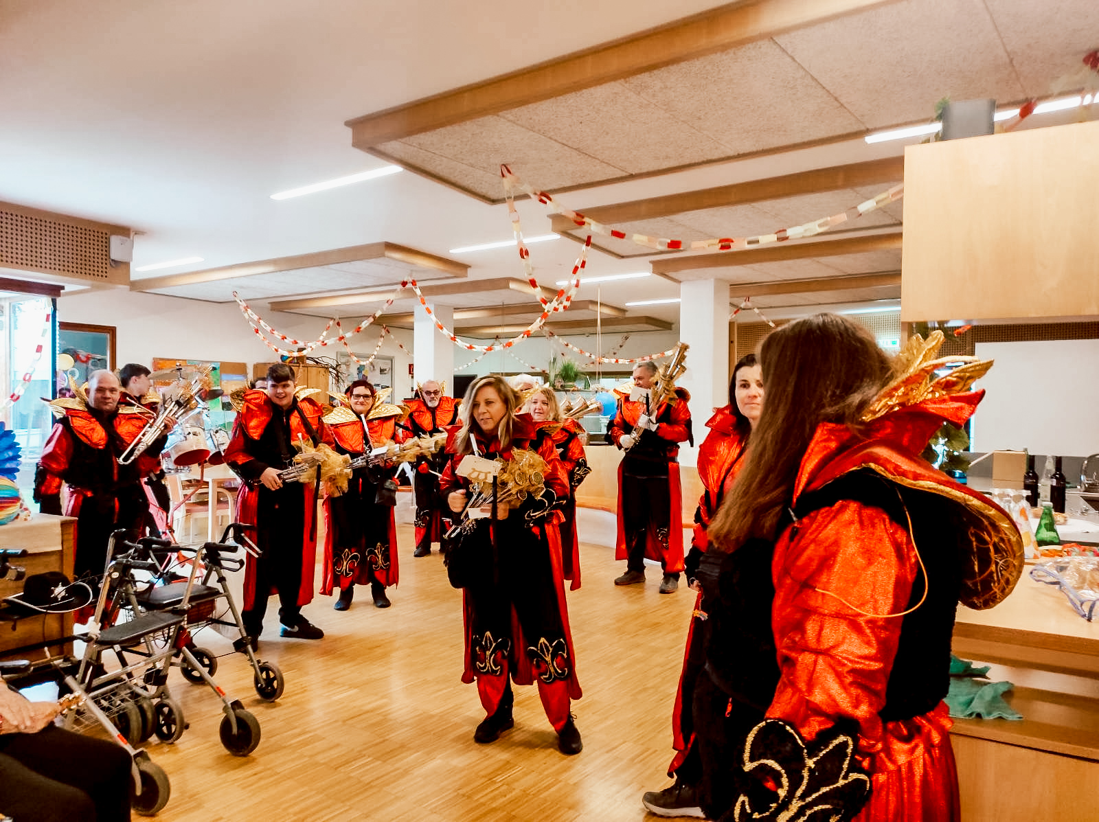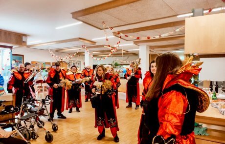 Passend zum Auftakt des Faschingswochenendes überraschte der Schalmeienzug Mondheuler die Bewohner:innen des SeneCura Herrenried mit einer mitreißenden Darbietung und sorgte für beste Stimmung.