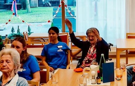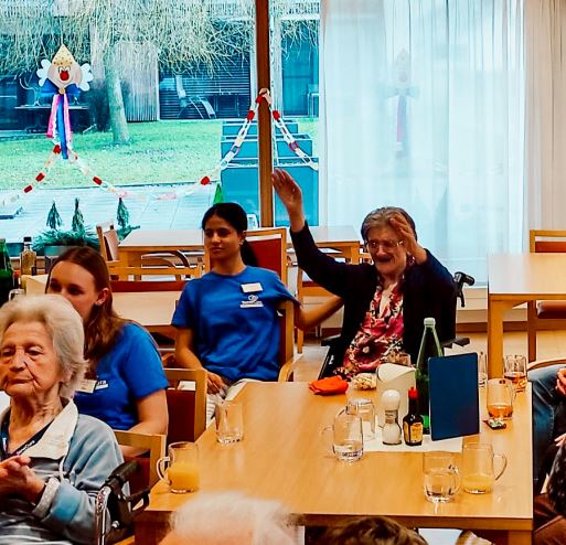 Es machte den Senior:innen viel Freue, dass sie selbst aktiv werden konnten und mit Schlaginstrumenten in das Musikprogramm eingebunden wurden. Es wurde geklatscht, gelacht und im Takt mitgespielt – Musik verbindet.