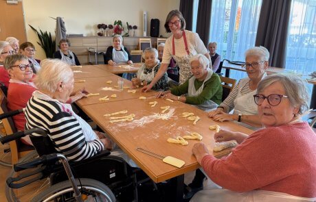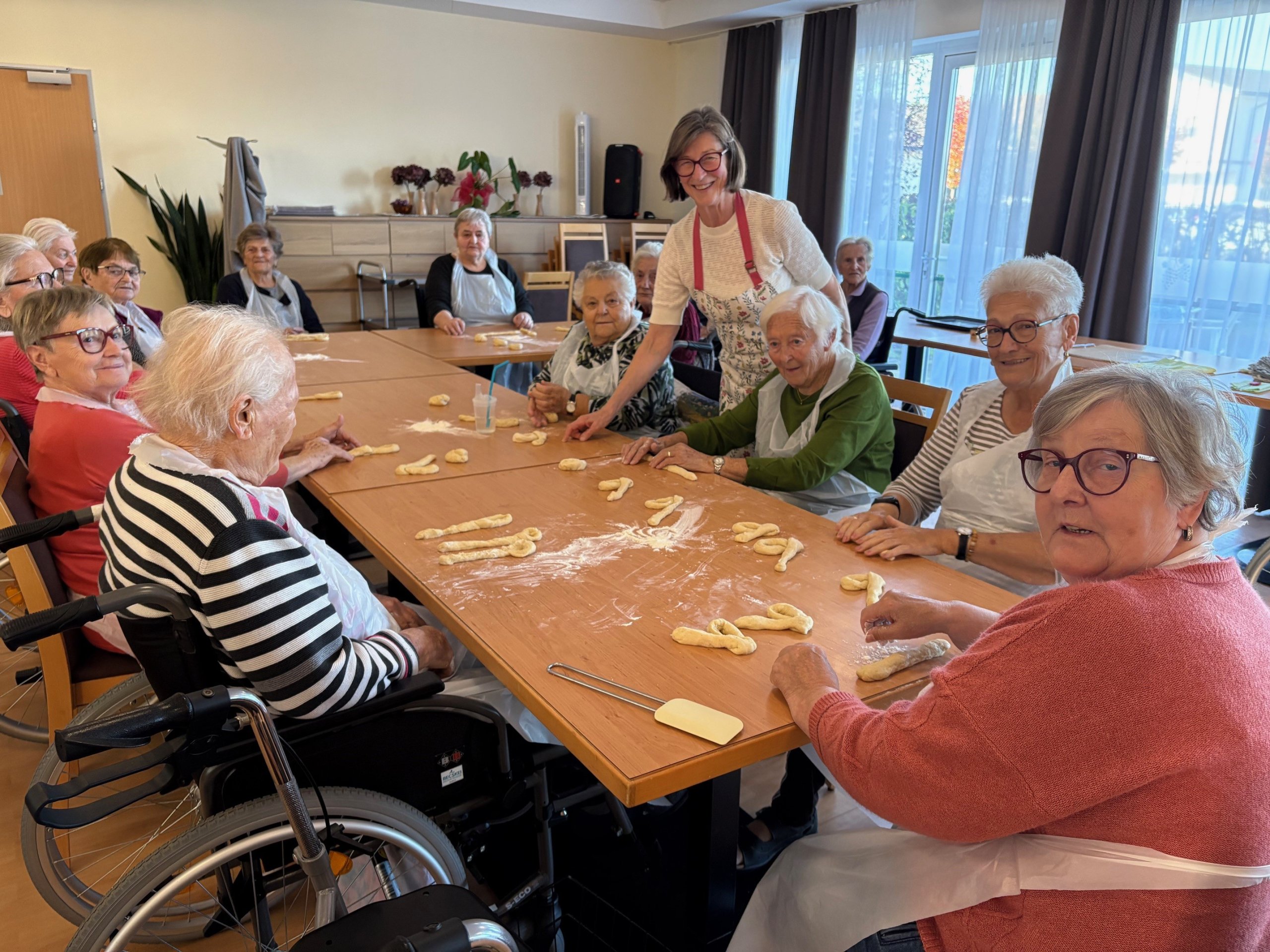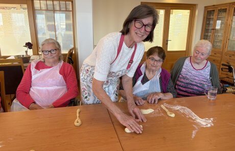 Im SeneCura Sozialzentrum St. Veit in der Südstmk. zog letztens ein süßer Duft durch das Haus, denn Bewohner:innen backten gemeinsam mit der ehrenamtlichen Mitarbeiterin Johanna Muster köstliche Allerheiligenstriezel. Voller Engagement bereitete die Backgruppe den Germteig zu und flechtete ihn anschließend mit Liebe zum Detail zu tollen Zöpfen. Nachdem die Allerheiligenstriezel fertig aus dem Backrohr kamen, waren sich die Bewohner:innen schnell sicher, dass die Backwaren nicht nur optisch, sondern auch geschmacklich hervorragend gelungen sind. Alle freuen sich schon sehr auf das gemütliche Zusammenkommen an Allerheiligen.