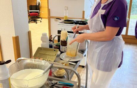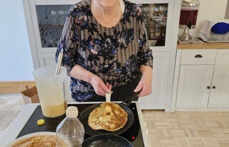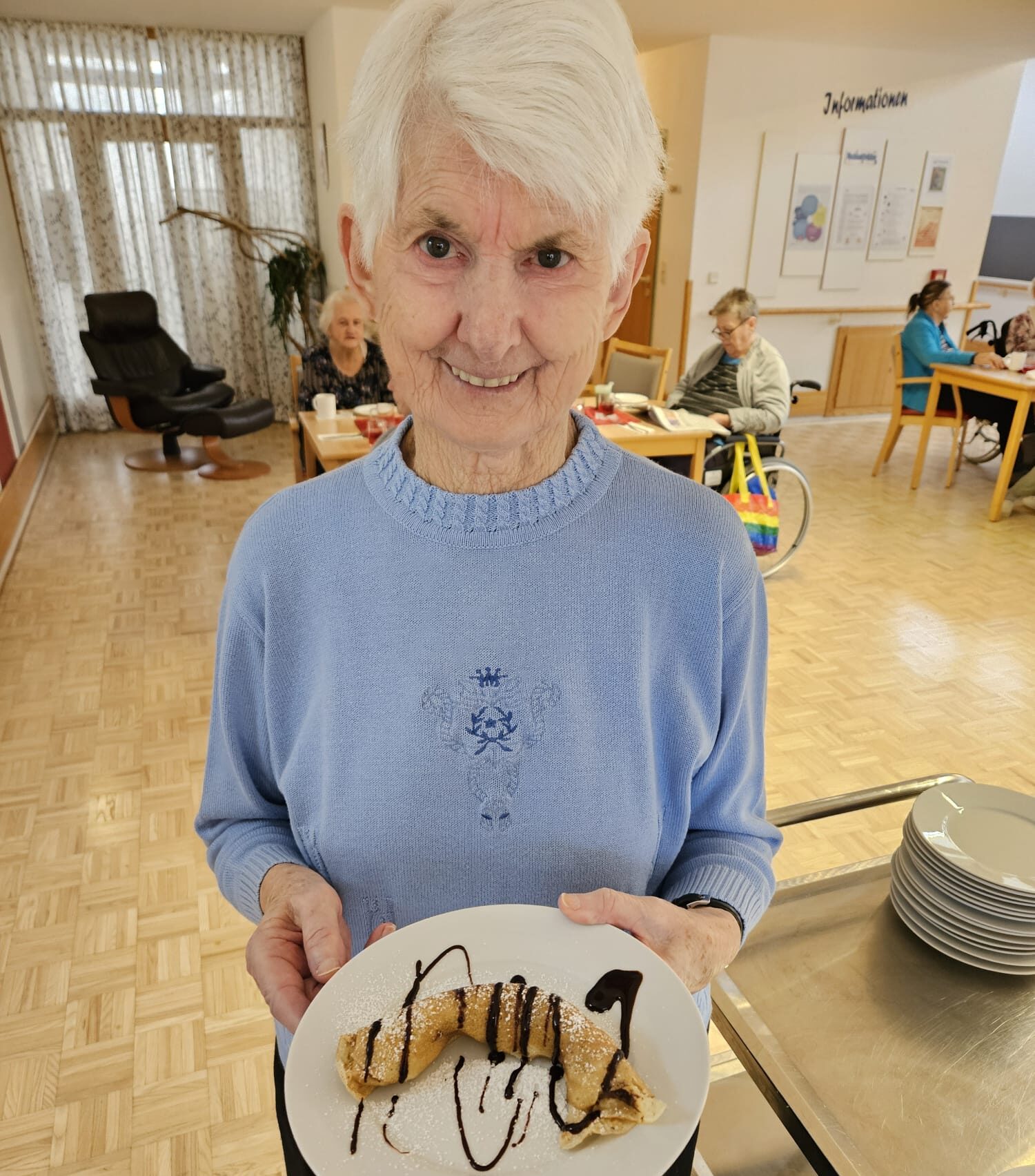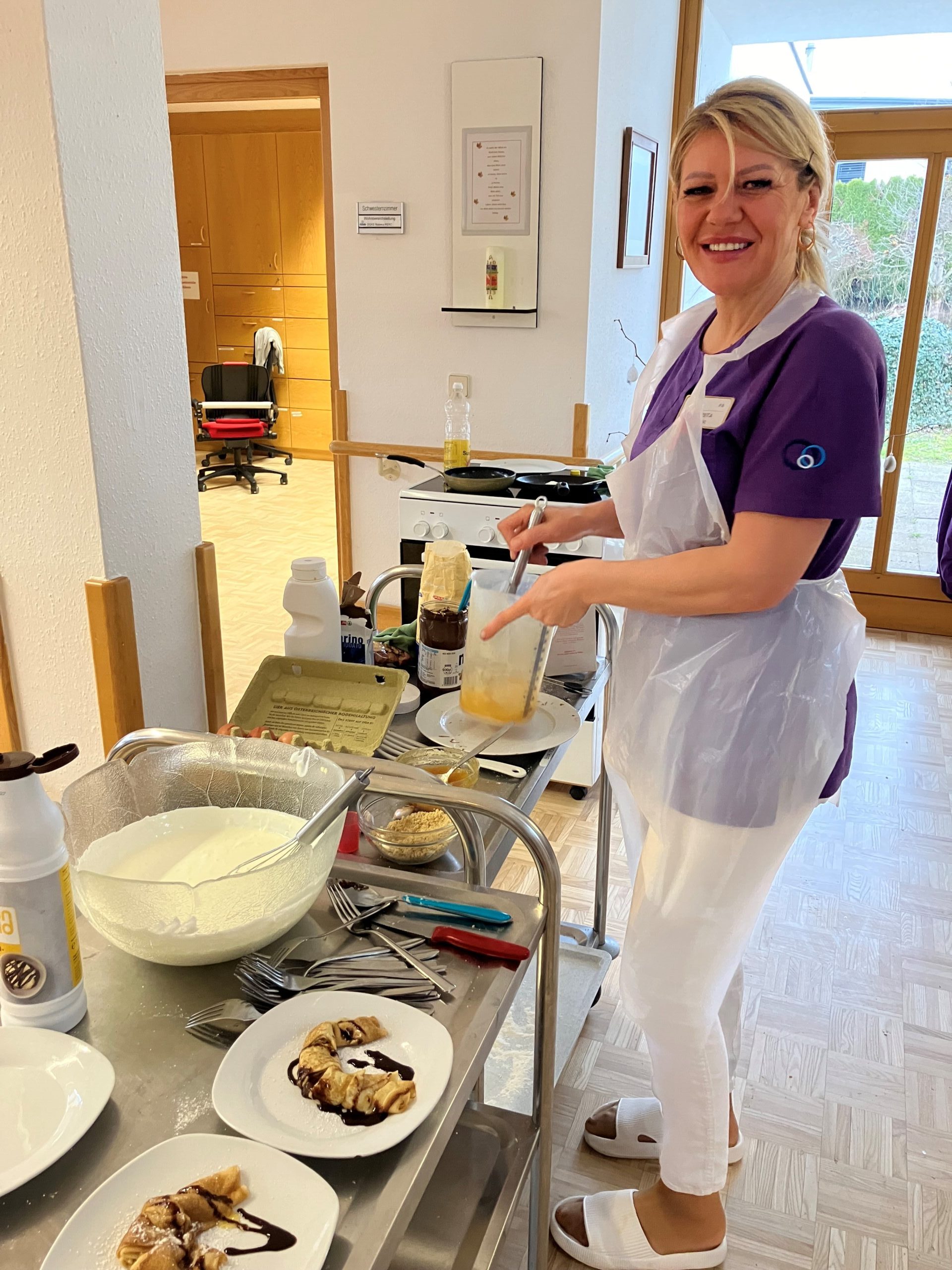 Im SeneCura Pflegezentrum St. Veit an der Glan wurde kürzlich eine kleine Palatschinken-Party veranstaltet. Als kleine Abwechslung hat die Animateurin Mirzeta Fehric gemeinsam mit den Bewohner:innen Palatschinken für alle gemacht und nach Lust und Laune befüllt. Egal, ob Nutella, Früchte oder Marmelade – es blieben keine Wünsche offen und die Bewohner:innen genossen das süße Frühstück in vollen Zügen.
