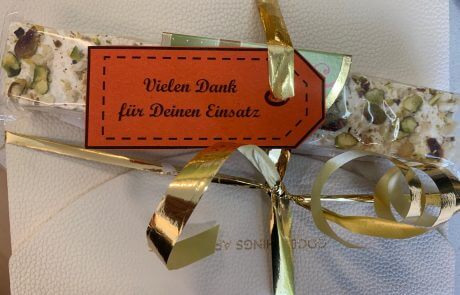 Als Zeichen der Wertschätzung haben alle Mitarbeitenden in unserem Haus einen hochwertigen Terminplaner bzw. ein Notebook sowie eine kleine süße Aufmerksamkeit in Form von feinem Nougat erhalten. Diese Geste soll unsere Anerkennung für ihren unermüdlichen Einsatz zum Ausdruck bringen.
