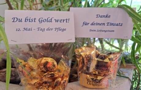 Zum Tag der Pflege gab es für die Kolleginnen und Kollegen des SeneCura Sozialzentrums Laurentius-Park Bludenz eine selbstgebastelte Anerkennung vom Leitungsteam. Voller Stolz auf das Tun und Wirken für die dem Team anvertrauten Menschen – ein Akt der Wertschätzung am Tag der Pflege!