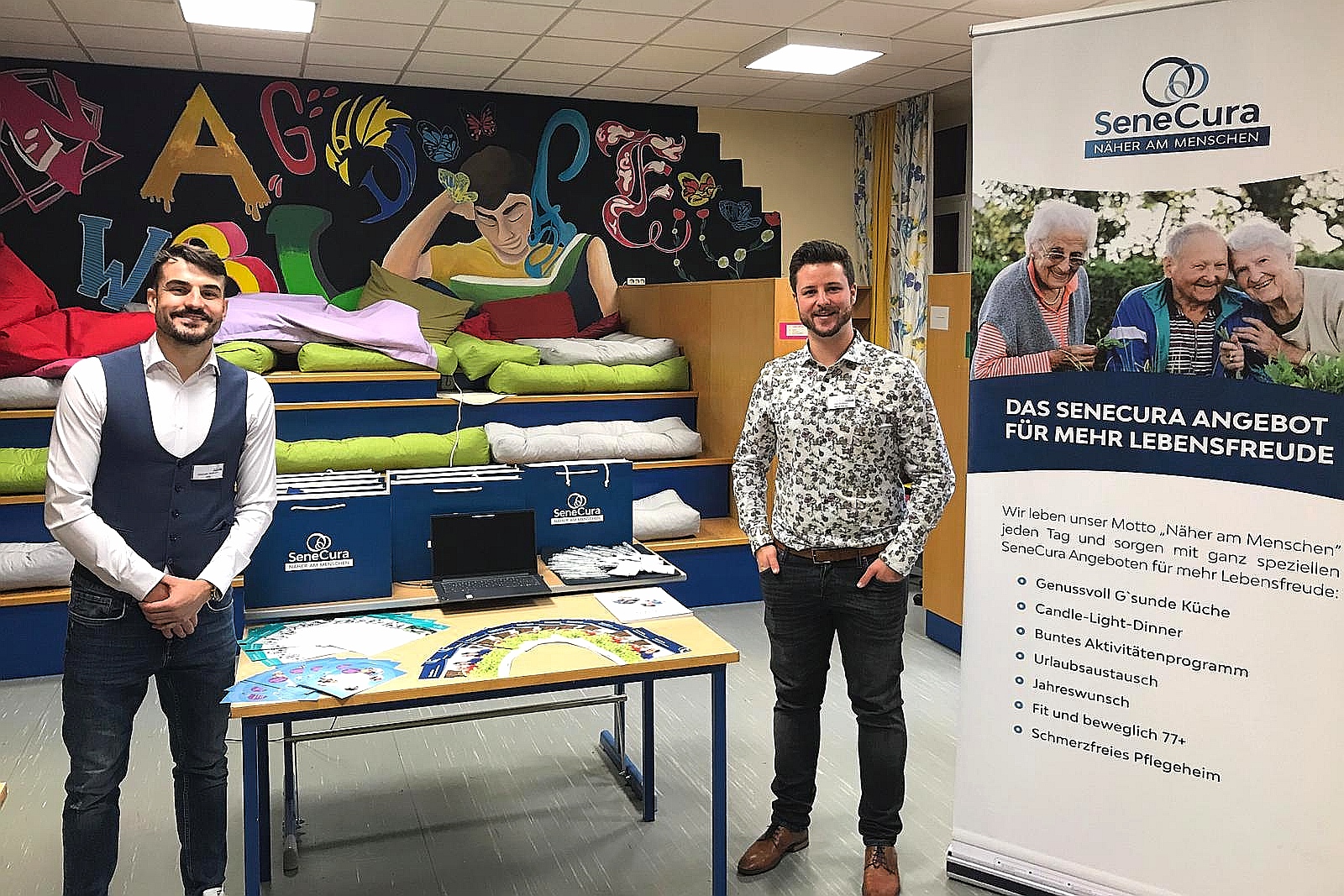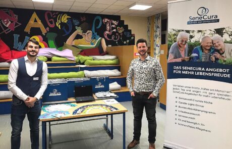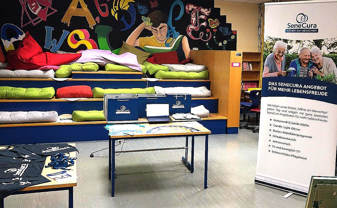 Letztens fand der diesjährige „Tag der Wirtschaft“ an der PTS in Gratkorn statt. Am 04. Oktober 2024 repräsentierten der WBL Alexander Adelmann und PDL Stv. Felix Schärmer das SeneCura Sozialzentrum Gratkorn bei der Veranstaltung. Es wurde ein Raum gemeinsam mit maximal einer anderen Firma zur Verfügung gestellt, in dem die Firmen wie an einem Messestand präsentiert werden konnte. Die Schüler:innen hatten die Möglichkeit, die Firmen mehr nach ihrem eigenen Interesse kennenzulernen. Der Tag der Wirtschaft begann um 09:00 Uhr mit einer Begrüßung durch den Direktor. Um 10:00 Uhr startete der anschließende Messebetrieb, der bis 13:00 Uhr andauerte. Danach wurden die Teilnehmer:innen zu leckeren Brötchen, Kaffee und verschiedenen Kuchen eingeladen. Der „Tag der Wirtschaft“ war eine willkommene Gelegenheit, die vielseitigen Karrieremöglichkeiten von SeneCura vorzustellen.