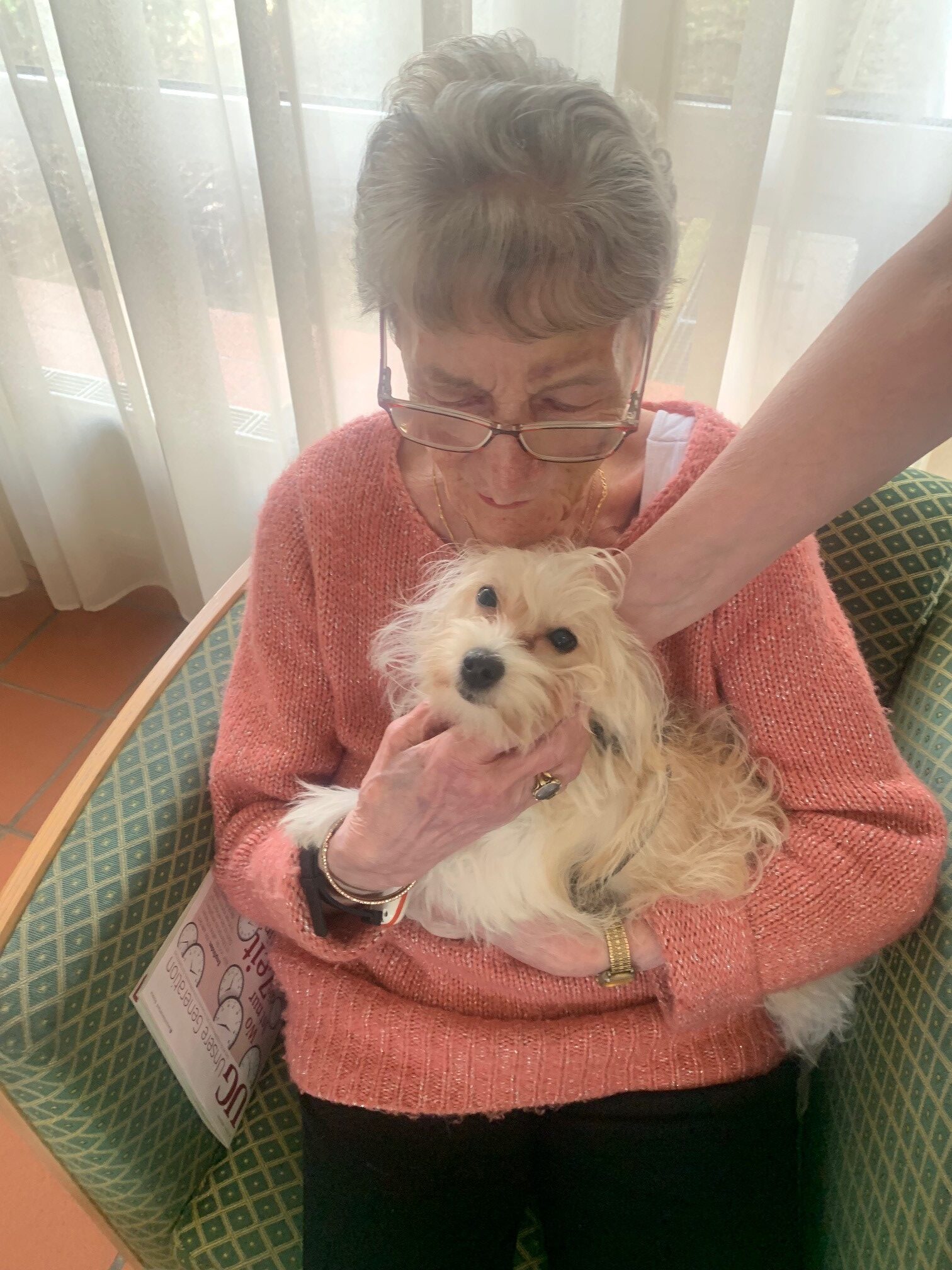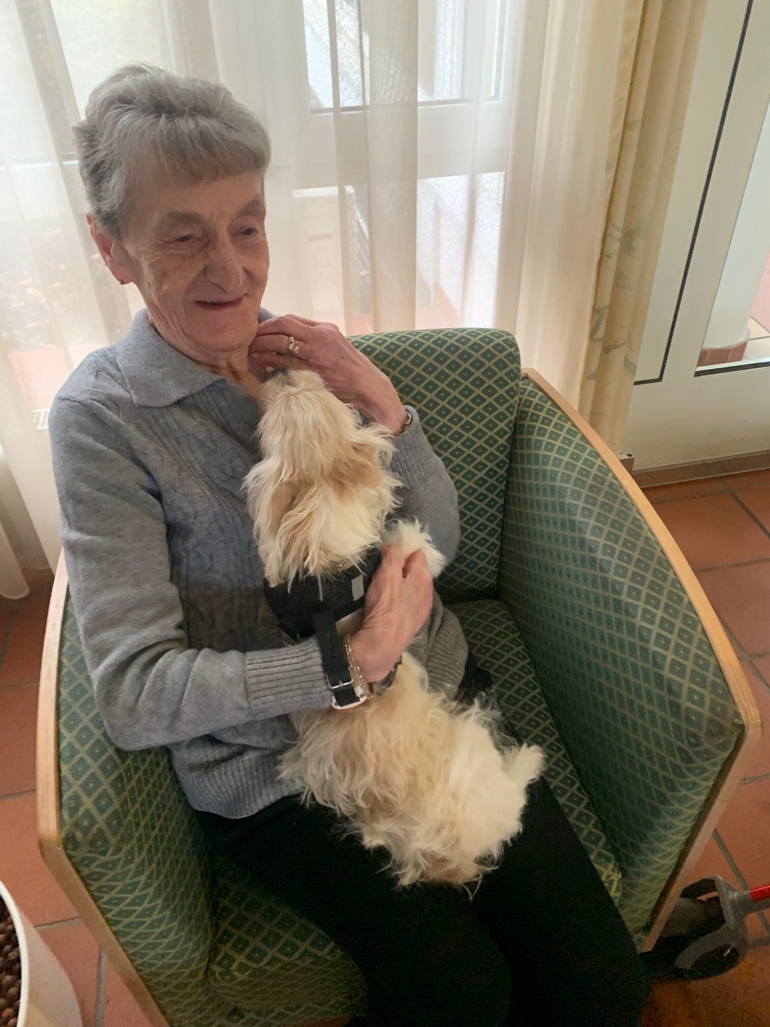 Die Bewohnerin freut sich sehr über den flauschigen Besuch.