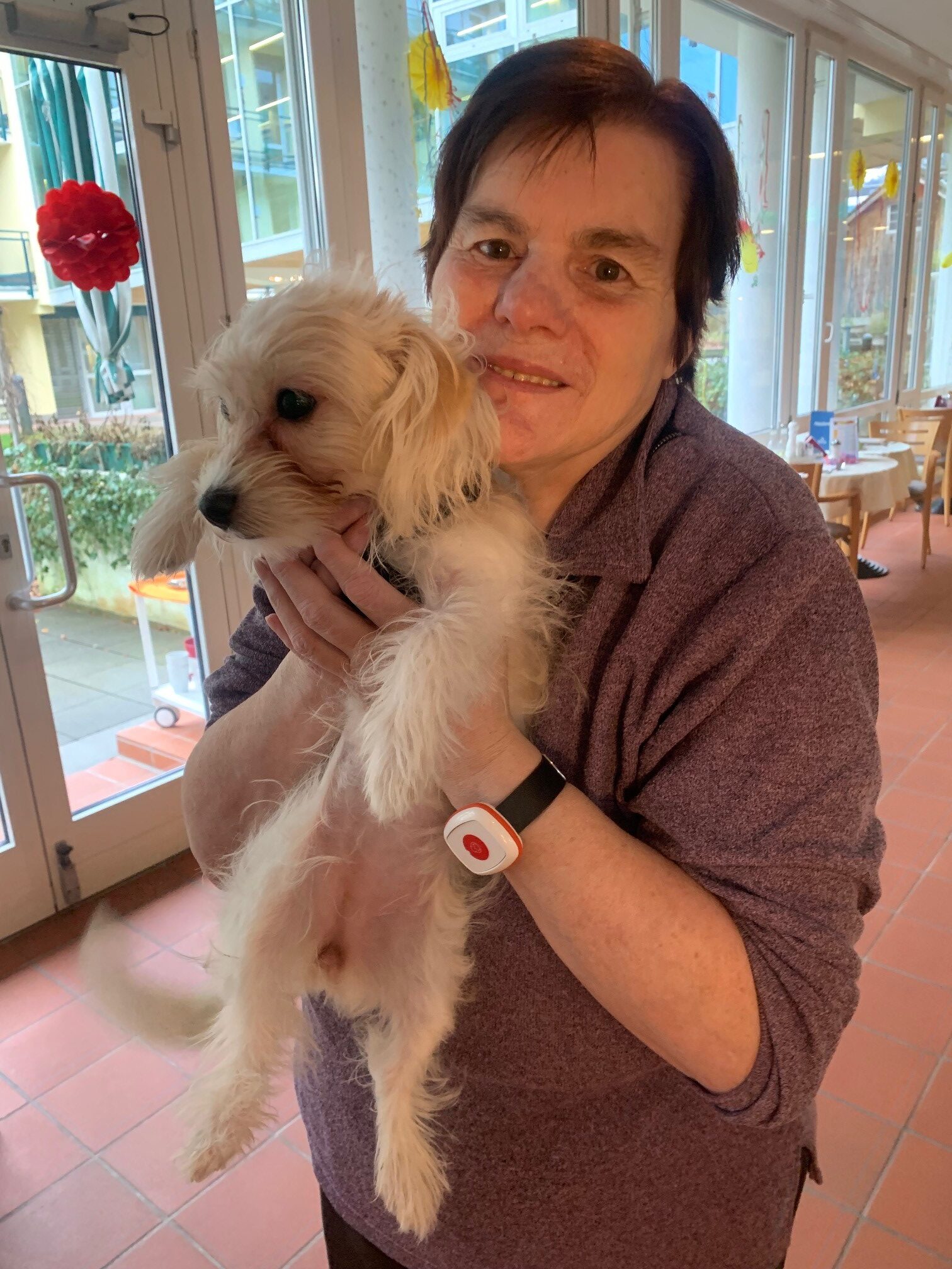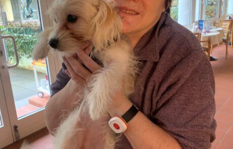 Die Therapiehündin Greta besuchte neulich das SeneCura Sozialzentrum Dornbirn. Gemeinsam mit ihrer Besitzerin Alexandra Landerer, die im Sozialzentrum als Sozialbetreuung tätig ist, erfreut der flauschige Vierbeiner jeden Donnerstag die Bewohner:innen des Hauses. Die Fellnase Greta verzauberte die Seniorinnen und Senioren, erhielt so einige Streicheleinheiten und hinterlässt jedes Mal einen so guten und positiven Eindruck, dass sich die Bewohner:innen jede Woche schon auf den Greta-Donnerstag freuen.
