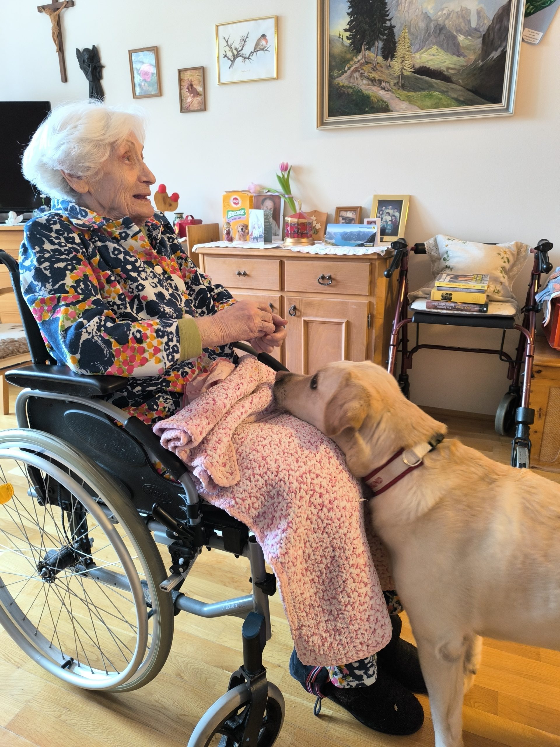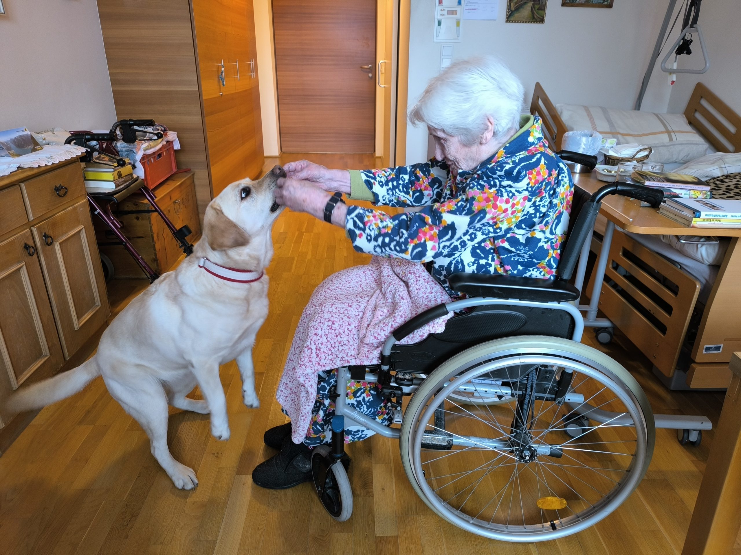 Tiere sind immer gern gesehene Gäste im SeneCura Sozialzentrum Eben. So war die Freude kürzlich über den Besuch von Therapiehund Sandy besonders groß. Ihre ruhige und freundliche Art sorgt dafür, dass sich die Bewohner:innen entspannen und den Alltag für einen Moment vergessen können. Sandy hat ein besonderes Gespür dafür, wer ihre Nähe braucht und schenkt den Bewohner:innen unaufdringliche, aber wohltuende Aufmerksamkeit. Vielen Dank für den Besuch!
