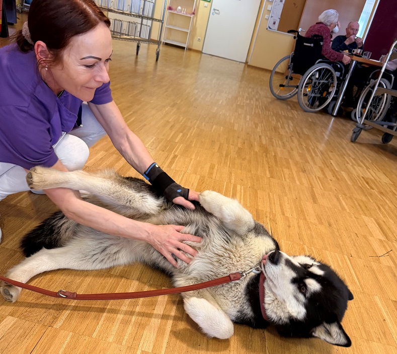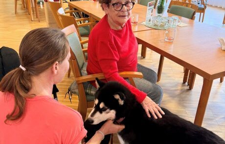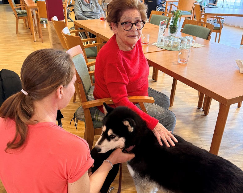 Im SeneCura Pflegeheim in Bad St. Leonhard sorgte kürzlich wieder ganz besonderer Besuch für viele strahlende Gesichter: Renate Meißl kam gemeinsam mit ihren liebevollen Therapiehunden vorbei und brachte jede Menge Freude mit. Ihre regelmäßigen Besuche sind für viele Bewohnerinnen und Bewohner bereits ein echtes Highlight, auf das sie sich jedes Mal aufs Neue freuen. Mit viel Geduld, Einfühlungsvermögen und einem feinen Gespür für die Menschen schenken die Hunde Nähe, Wärme und unvergessliche Momente. Sanfte Streicheleinheiten, neugierige Hundeblicke und kleine Kunststücke zaubern nicht nur ein Lächeln ins Gesicht, sondern wecken schöne Erinnerungen und sorgen für lebendige Gespräche. Es sind oft die kleinen Begegnungen, die eine besonders große Wirkung haben. Doch nicht nur die Bewohnerinnen und Bewohner genießen diese besonderen Augenblicke – auch für die Mitarbeiterinnen und Mitarbeiter sind die Besuche immer etwas ganz Besonderes. Gerne wird im Arbeitsalltag eine kurze Pause eingelegt, um die freundlichen Vierbeiner zu streicheln und neue Energie zu tanken. Diese kleinen Momente sorgen für gute Stimmung und stärken das Miteinander im Haus. Diese wertvolle Arbeit liegt auch der Heimleitung besonders am Herzen. Heimleiterin Brigitta Penz weiß aus eigener Erfahrung, wie bedeutend tierbegleitete Intervention sein kann, da sie selbst viele Jahre in diesem Bereich tätig war. Umso größer ist die Freude darüber, dass solche besonderen Momente regelmäßig im Haus ermöglicht werden können. SeneCura bedankt sich von Herzen bei Renate Meissl für ihr großes Engagement und die liebevolle Arbeit mit ihren Hunden. Die Besuche zeigen immer wieder aufs Neue, wie wertvoll tierische Begleiter für das Wohlbefinden sind – und wie viel Freude ein paar Pfotenabdrücke im Alltag hinterlassen können.