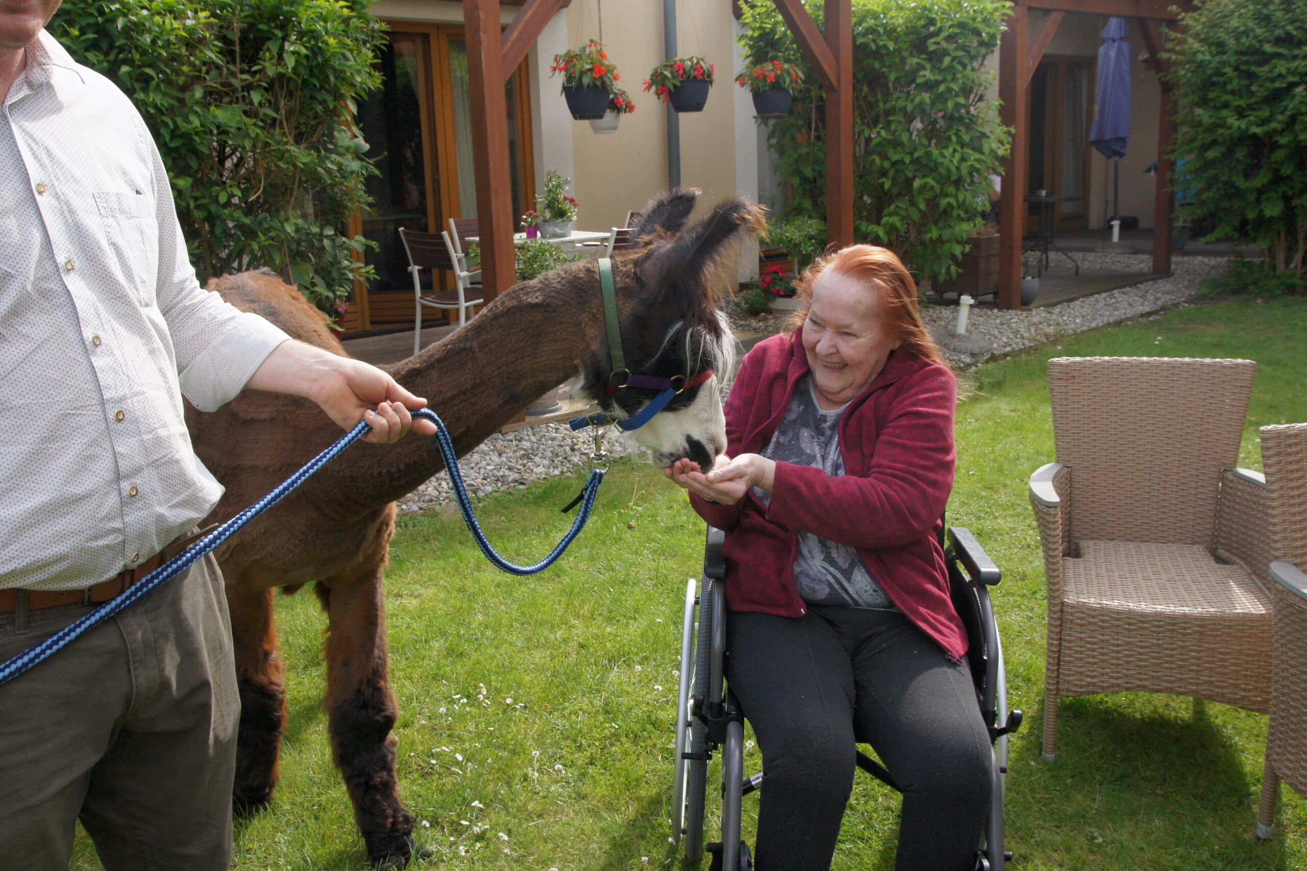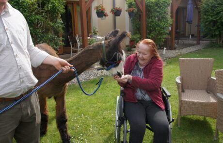 Die Bewohnerin freut sich über den außergewöhnlichen Besuch.