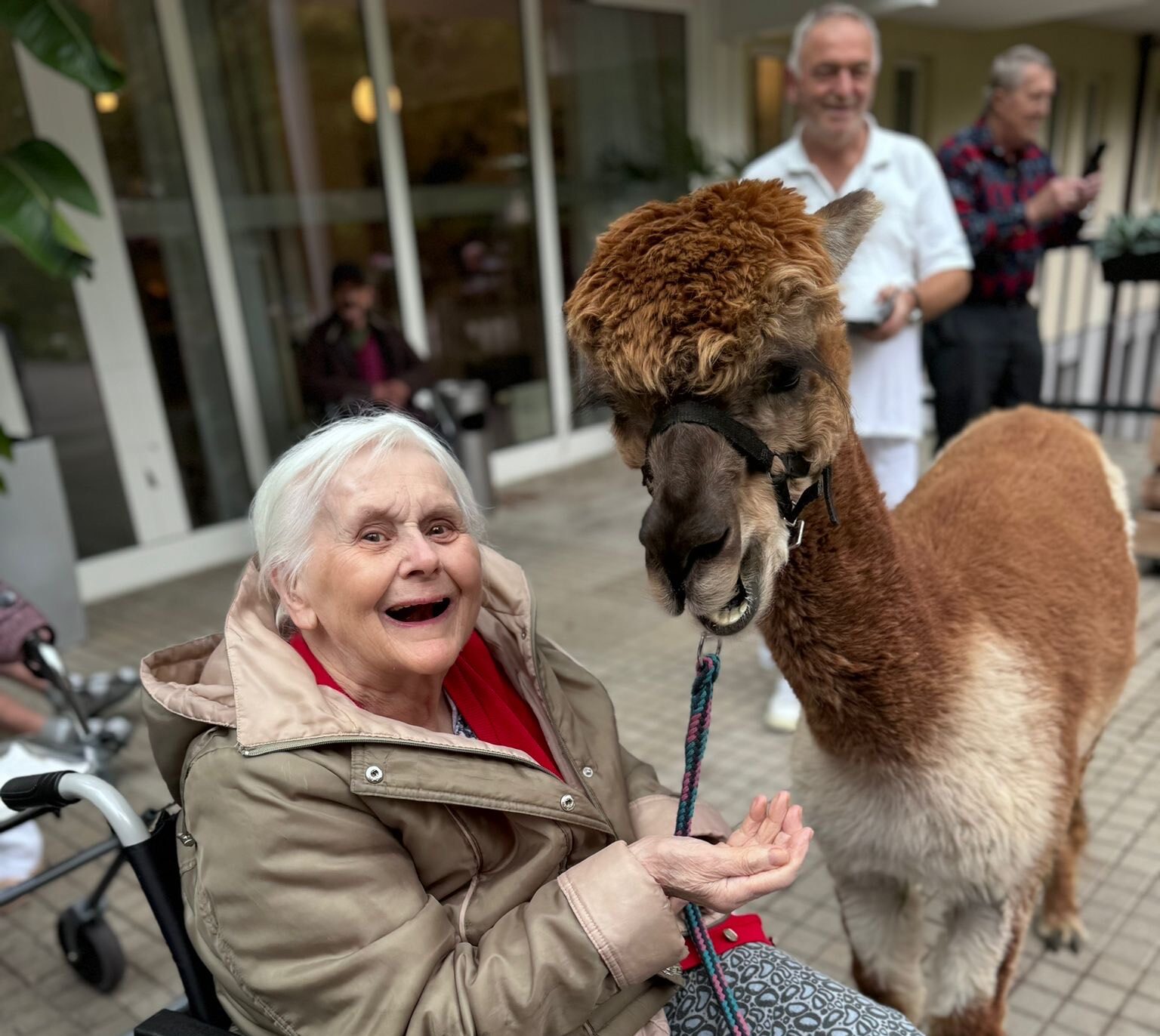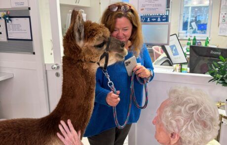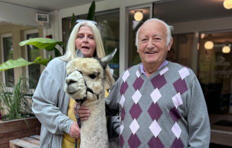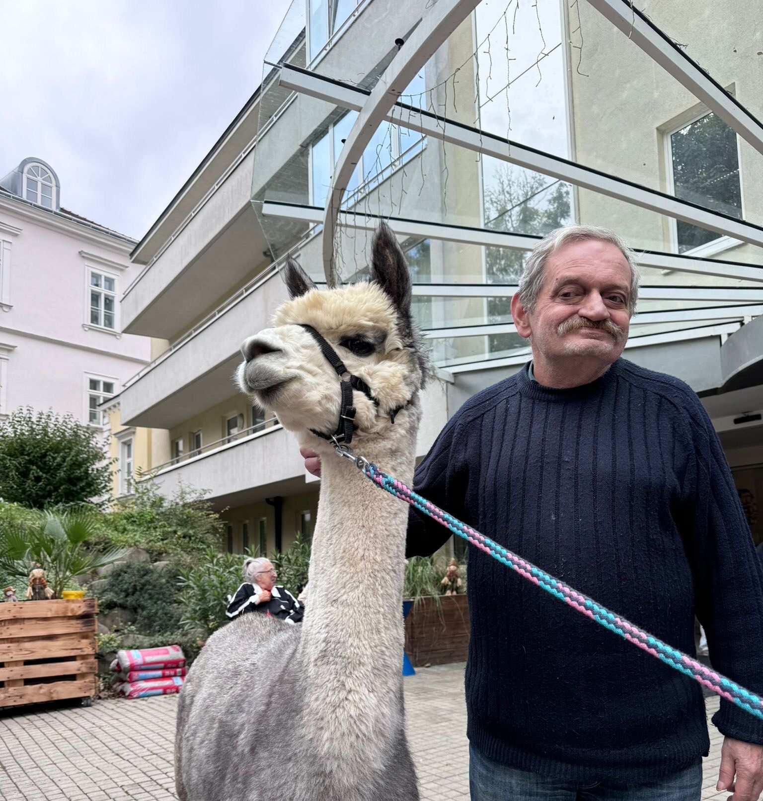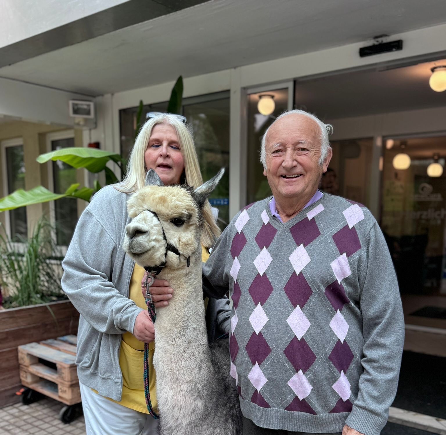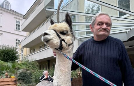 Es gab flauschigen Besuch in der SeneCura Residenz Oberdöbling, denn die drei kuschligen Alpakas Paddy, Salomon und Macuro sind zu Besuch gekommen. Letzte Woche machten sich die Fellnasen auf den Weg in die Residenz und wurden geknuddelt, gefüttert und gestreichelt. Paddy, Salomon und Macuro wirkten mit ihrem Dasein sehr beruhigend auf die Bewohner:innen und eroberten ihre Herzen schnellstens.