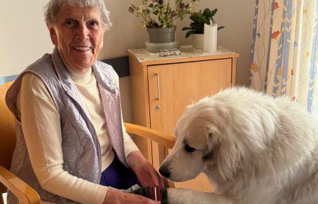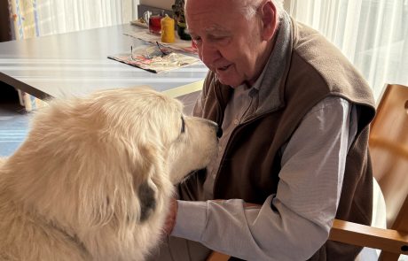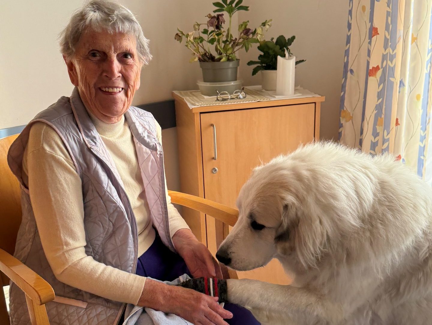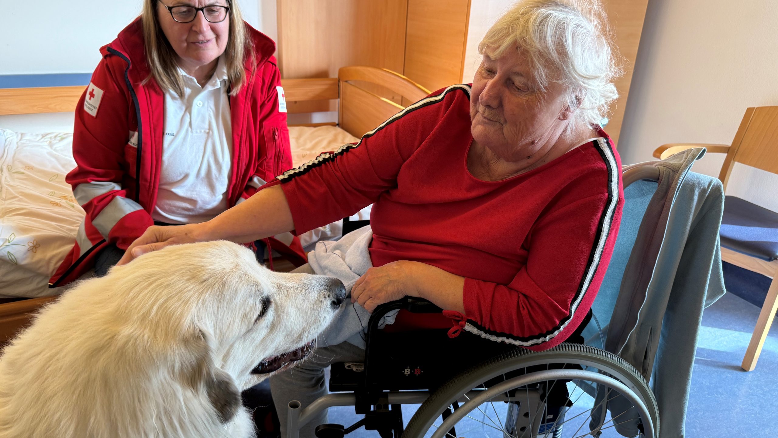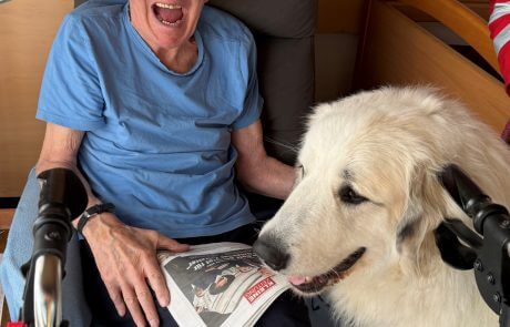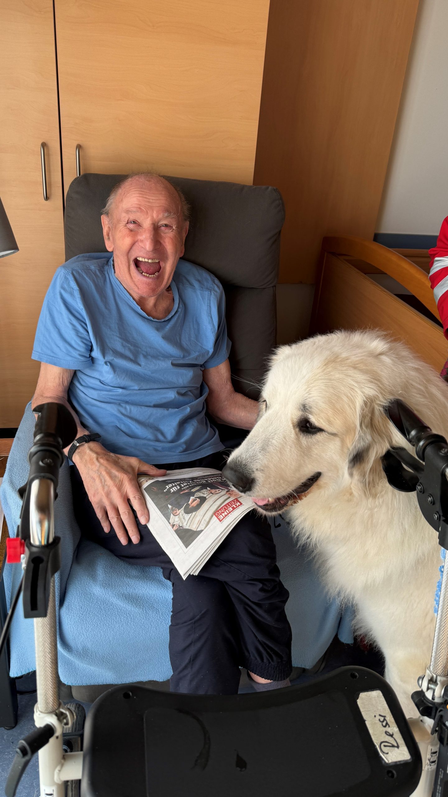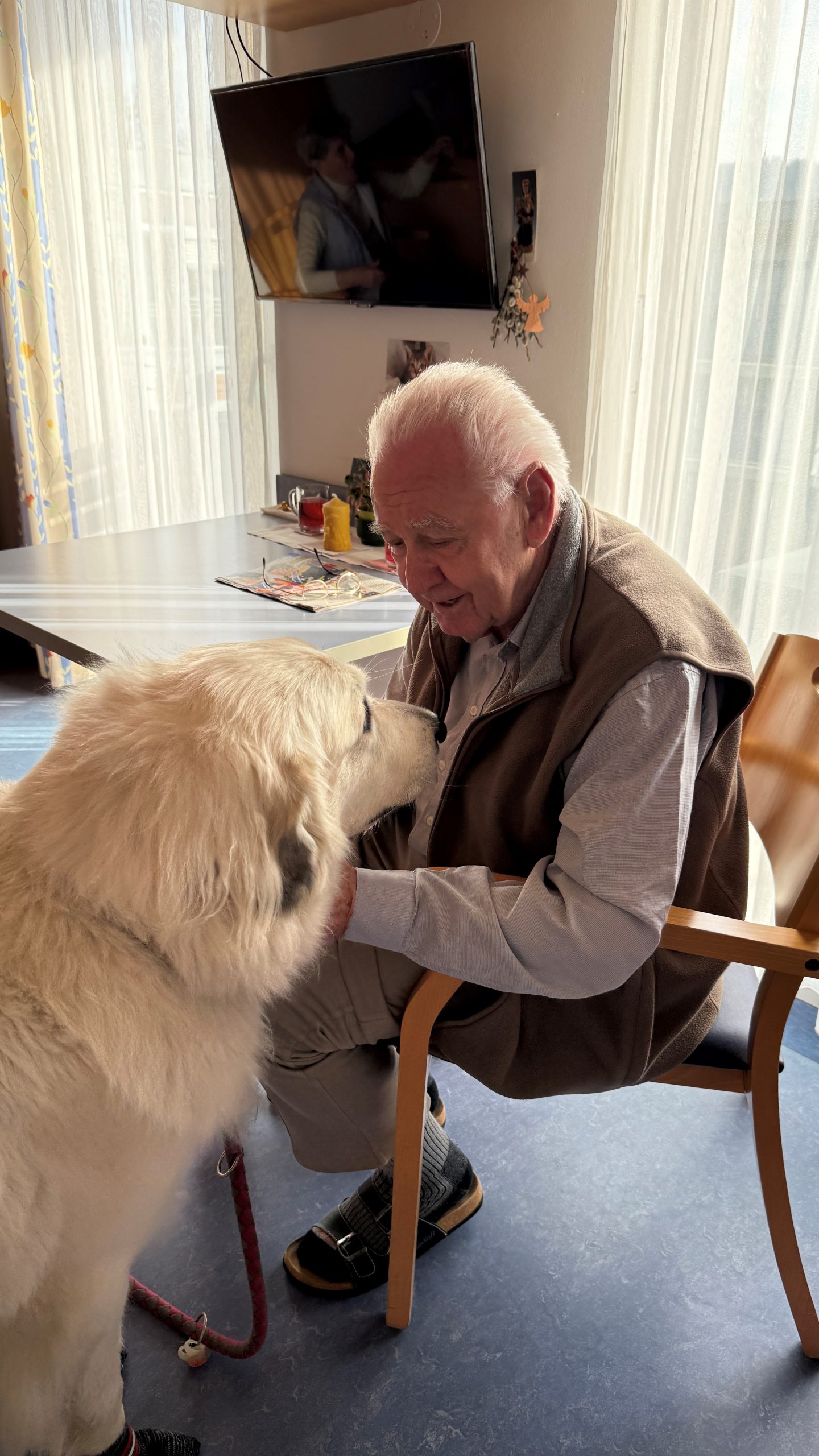Auch bei Menschen mit schwerer Krankheit oder Demenz wirkt ein tierischer Besuch oft für überwältigende Freude – und so konnte Maëlys wieder vielen Seniorinnen und Senioren ein Lächeln ins Gesicht zaubern.