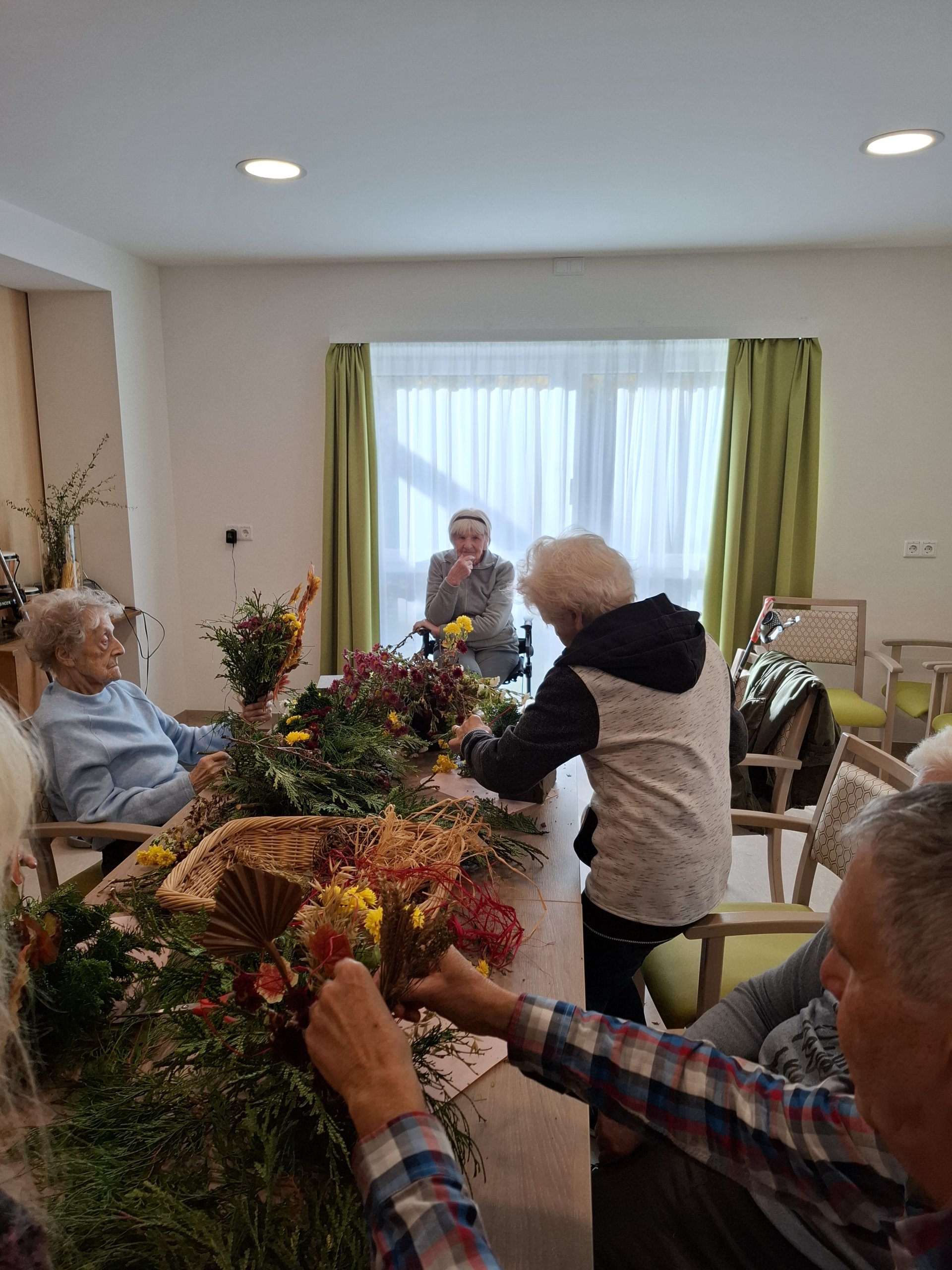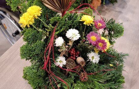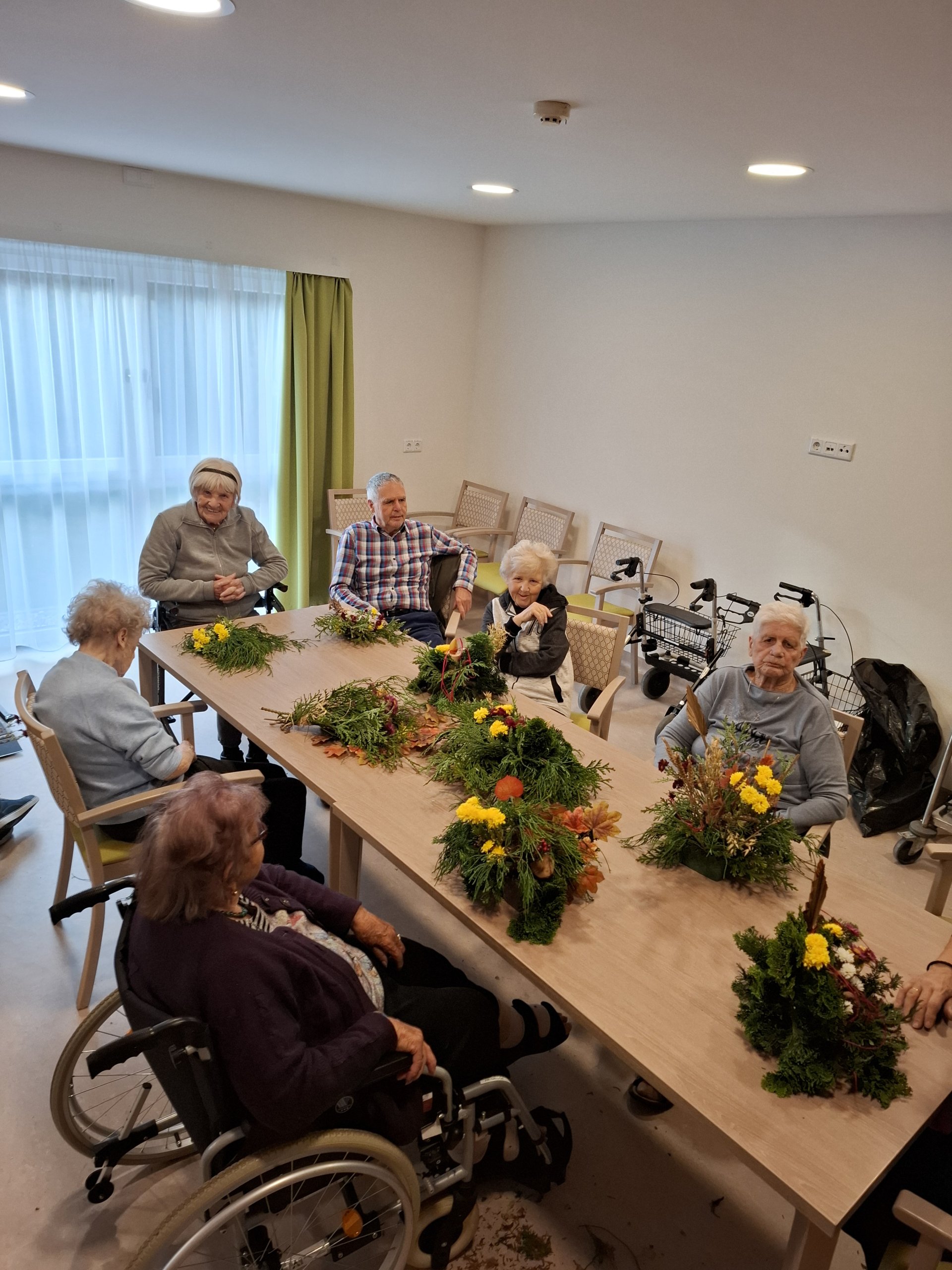 Die Zeit rund um Allerheiligen bietet so manche Tradition – und so auch im SeneCura Pflegezentrum Villach. Gemeinsam mit den Bewohner:innen wurden herrliche Allerheiligengestecke gemacht. Dazu wurden in erster Linie viele Naturmaterialien sowie auch Tannen- und Koniferenzweige in Form gebracht und liebevoll mit Blumen und getrockneten Gräsern ergänzt. Man sagt ja: „Viele Hände, bald ein Ende!“ und das traf in dieser Runde wirklich zu. Es war ein wunderbares Miteinander. Die Gestecke konnten sich sehen lassen und wurden im Anschluss im Haus verteilt. Ein wunderbarer Anblick war man sich einig.