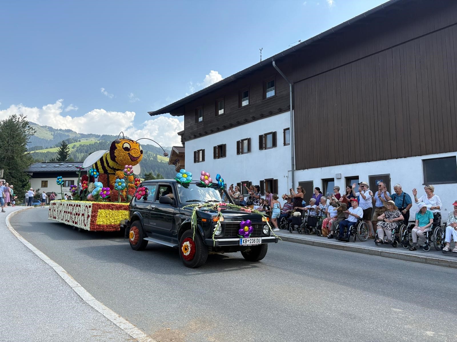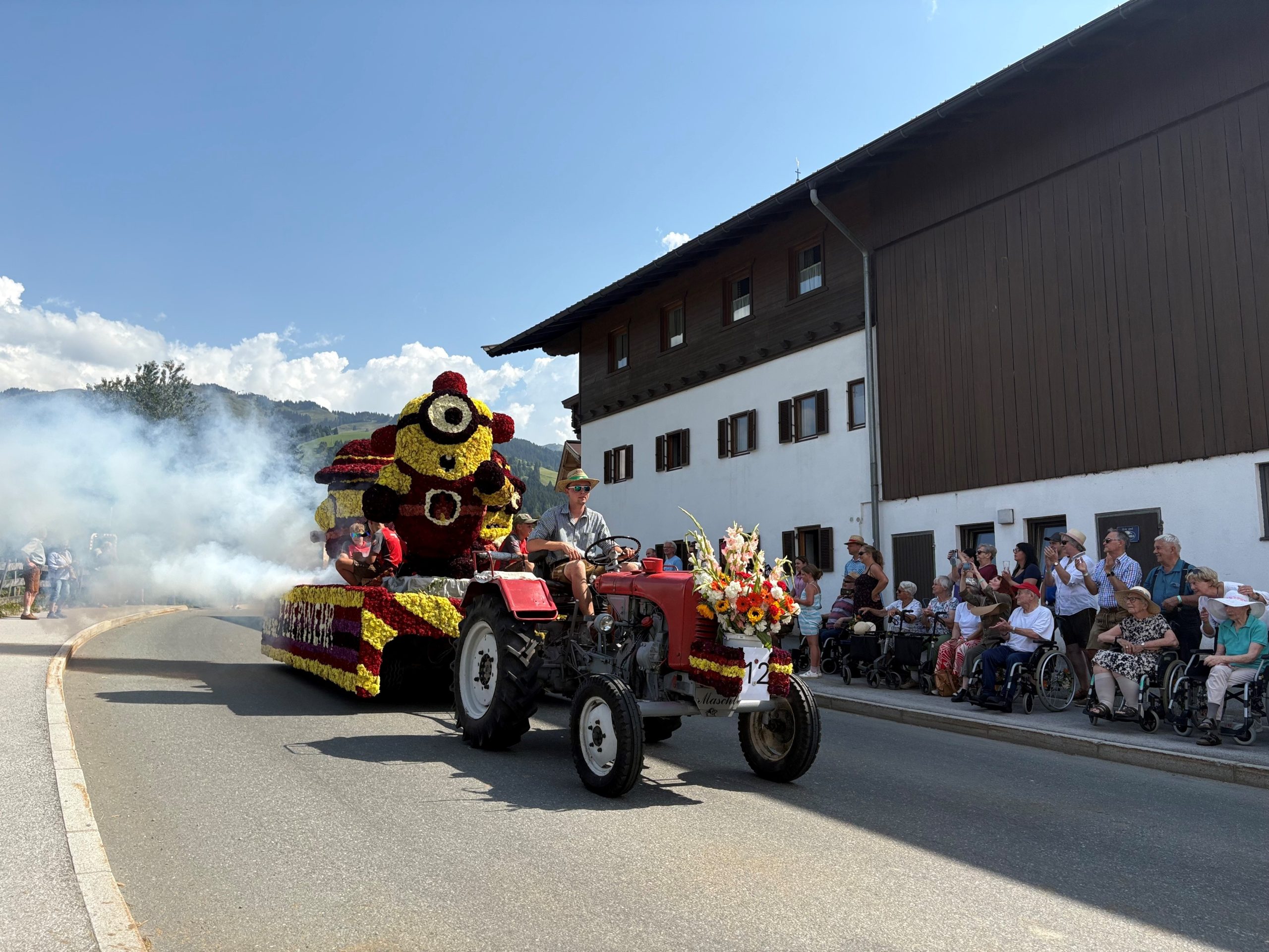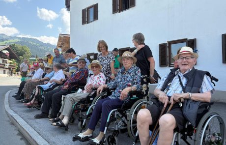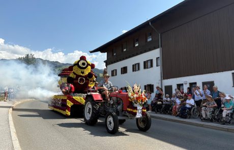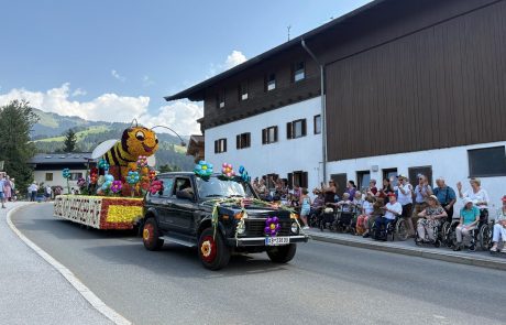 Kürzlich fand in Kirchberg in Tirol ein toller Blumencorso statt. Auch die Bewohnerinnen und Bewohner des SeneCura Sozialzentrums Kirchberg ließen sich diesen Augenschmaus nicht entgehen. Von einem perfekten Schattenplätzchen aus konnten sie die Wägen, kunstvoll mit hunderttausend Blüten geschmückt, bewundern, während Musikkapellen vorbeizogen. Dank der großartigen Organisation und Begleitung der ehrenamtlichen Mitarbeiterinnen, allen voran Martha Strasser, wurden strahlende Gesichter und leuchtende Augen sichtbar – ein unvergesslicher Tag voller Freude, Farbenpracht und fröhlicher Momente, den die Bewohner:innen noch lange in Erinnerung behalten werden.