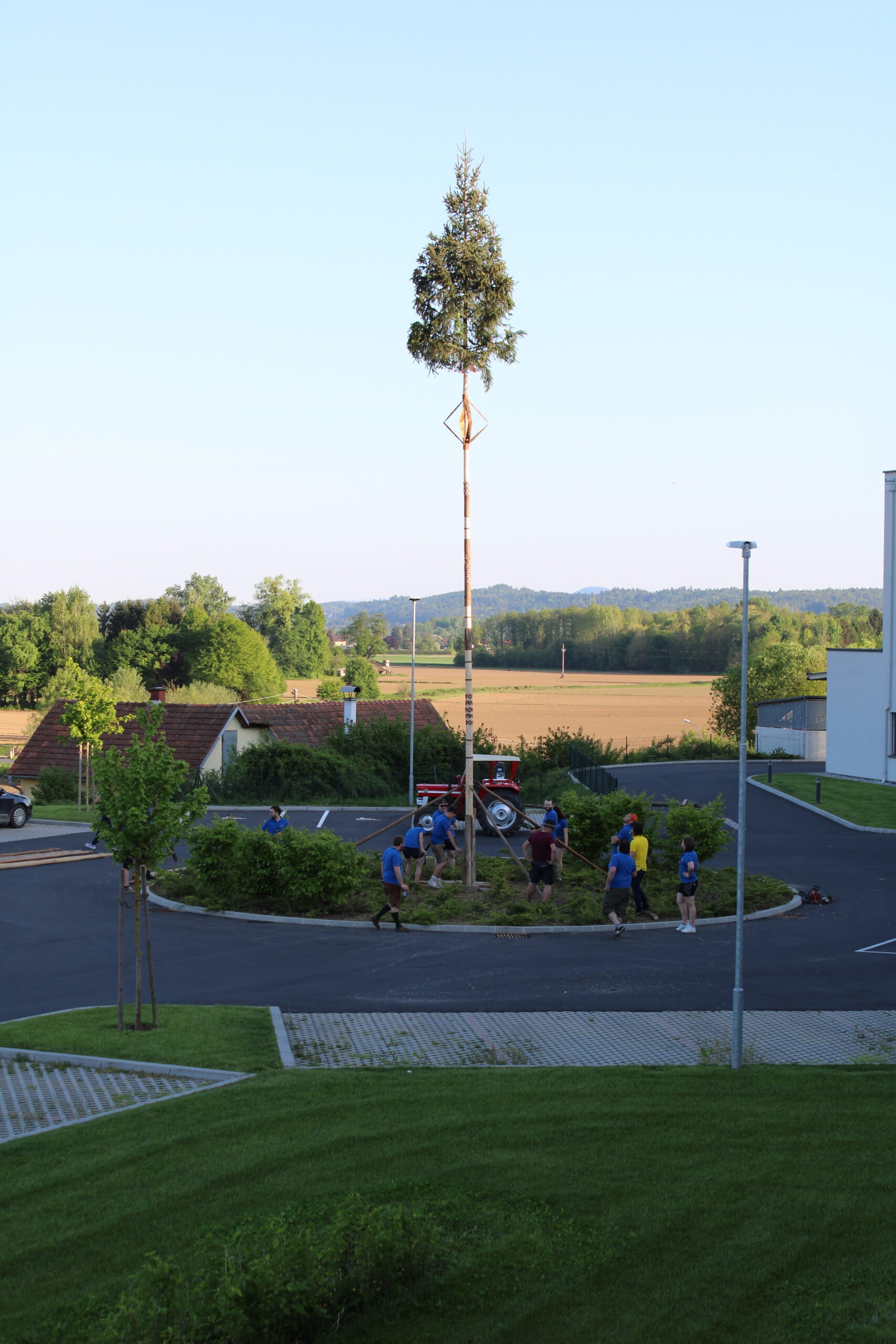 Der Maibaum wurde nur mit Muskelkraft aufgestellt.