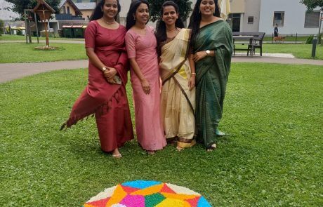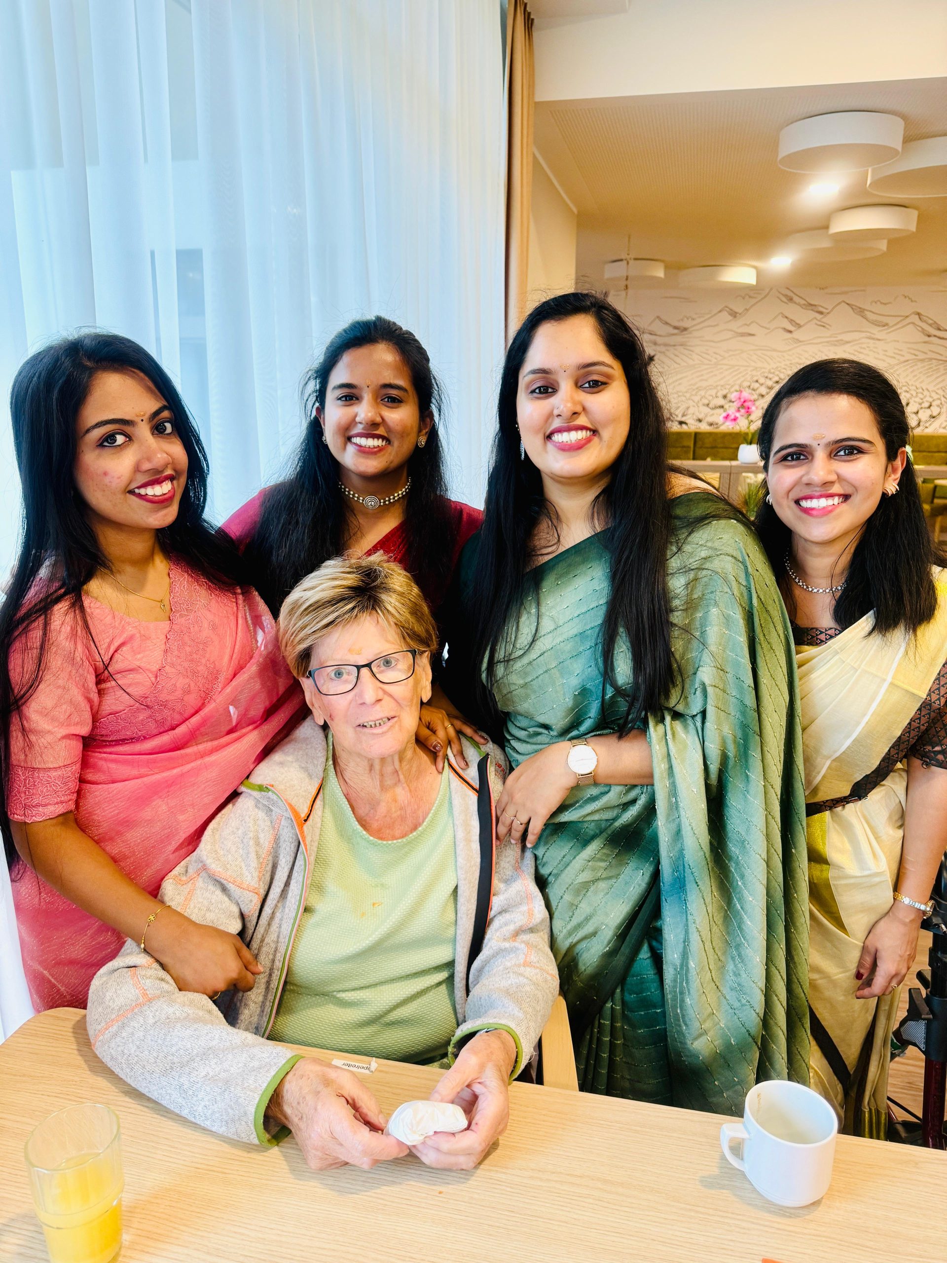 Kürzlich fand im SeneCura Pflegezentrum Kalwang ein traditioneller indischer Tag statt. Vier indische Mitarbeiterinnen haben dafür ihre traditionelle Kleidung angezogen und Tänze sowie Gesänge aus der Heimat präsentiert. Ebenso wurde gemeinsam ein indisches Bild gestaltet. Kulinarisch erwartete die Bewohner:innen an diesem Tag indische Linsensuppe, Curry-Geschnetzeltes mit Reis, indischer Gewürzkuchen sowie traditionell indische Getränke. Die Bewohner:innen waren glücklich und freuten sich über den Einblick in die indische Tradition der Mitarbeiterinnen.