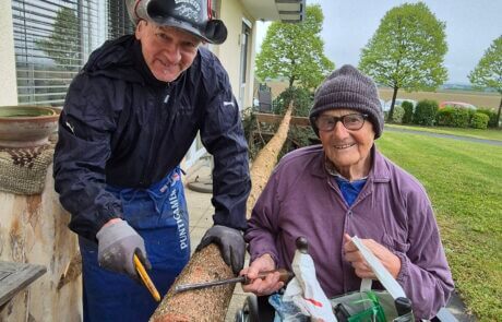 Letztens fand das traditionelle Maibaum-Aufstellen im SeneCura Sozialzentrum Unterpremstätten statt. Begonnen hat die Veranstaltung mit tollen Grußworten durch die erste Vizebürgermeisterin der Gemeinde, Ingrid Baumhackl. Anschließend haben die Gemeindemitarbeiter:innen den Maibaum aufgestellt, welcher von der Familie Gruber aus Premstätten gespendet und zugestellt wurde. DerFamilie Gruber gilt ein besonderer Dank, da sie seit mehreren Jahres als Maibaumspender auftritt. Die Bewohner:innen des Hauses gestalteten in liebevoller Handarbeit den Kranz und das Schnitzen des Baumstammes übernahm der Mitarbeiter Gerhard Wippel, der durch den Bewohner Josef Schloffer unterstützt wurde. Natürlich wurde das Ereignis sowie die anschließende Feier durch die Band „Trompetenexpress“ musikalisch umrahmt.
