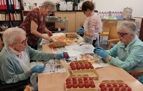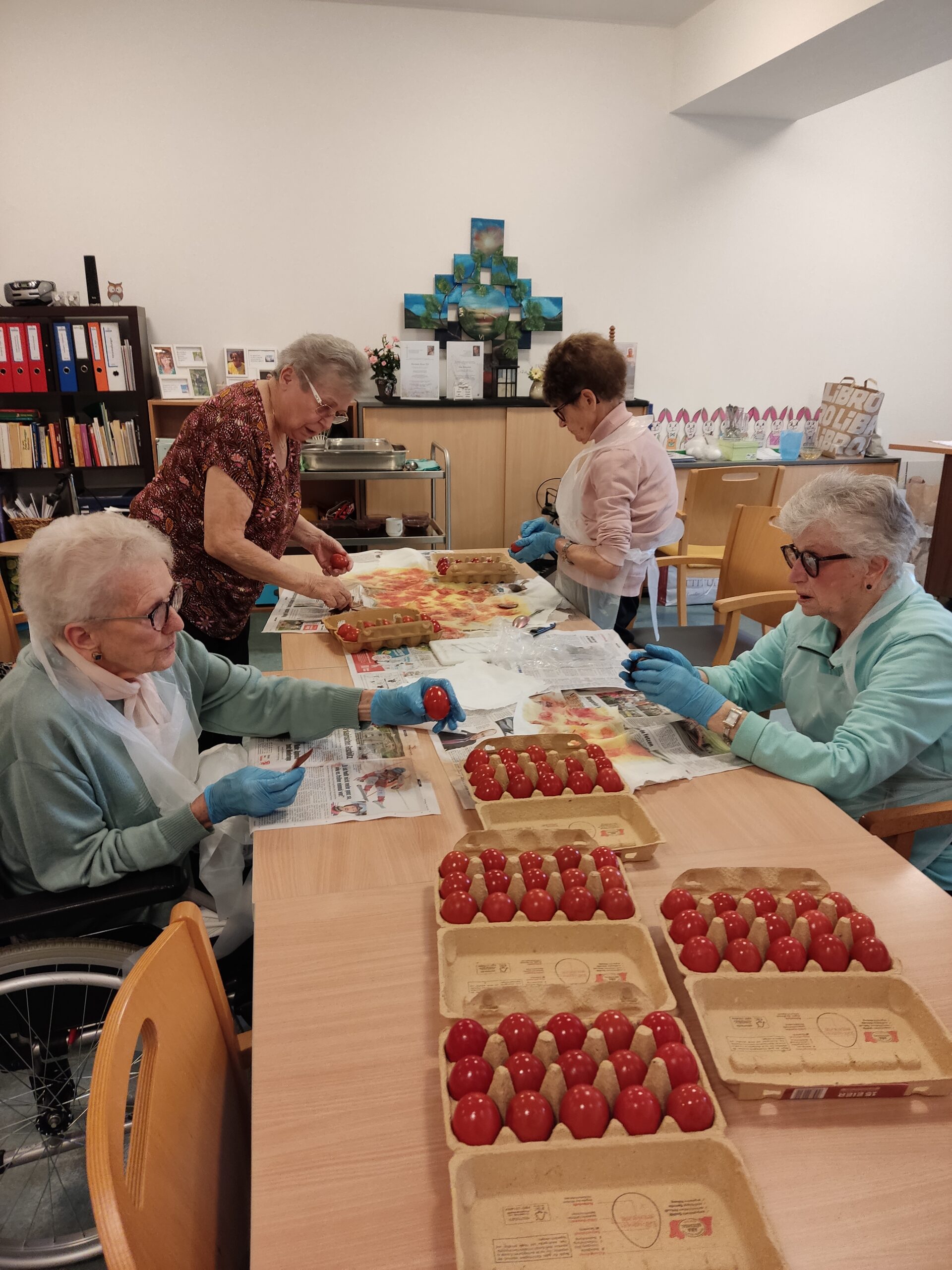 Zum traditionellen Ostereierfärben trafen sich vier Bewohnerinnen des SeneCura Sozialzentrums Kammern, die mit Herz und Emotion bei der Sache waren. Es war eine Freude zuzusehen, da ihnen die Begeisterung und Konzentration ins Gesicht geschrieben stand. Stolz betrachteten sie nun ihr Werk und versicherten, sie hätten noch hundert Eier gefärbt, soviel Spaß hat es ihnen gemacht!
